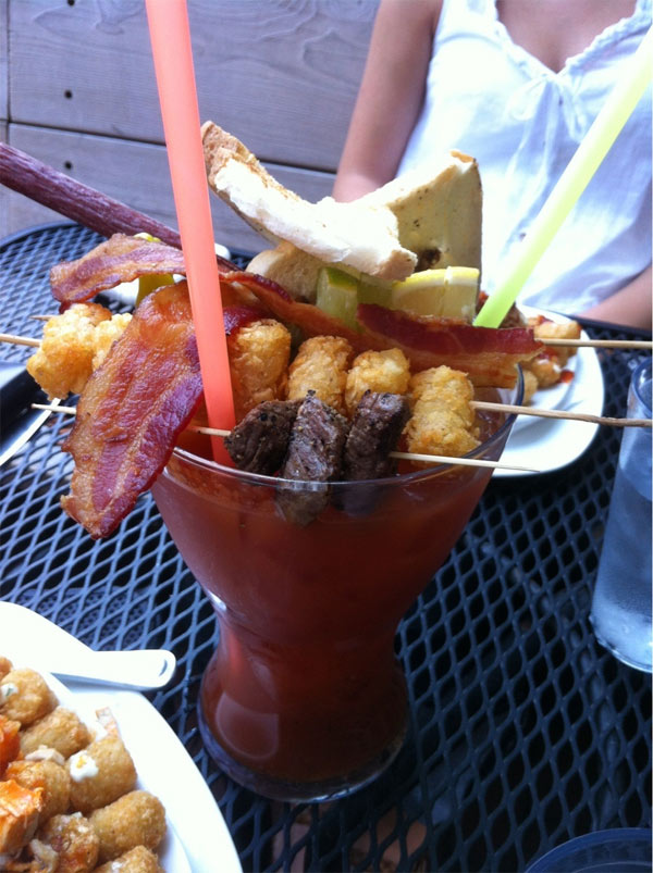 Yep, that Bloody Mary has an added surprise: BACON! And not only that, tater tots too!