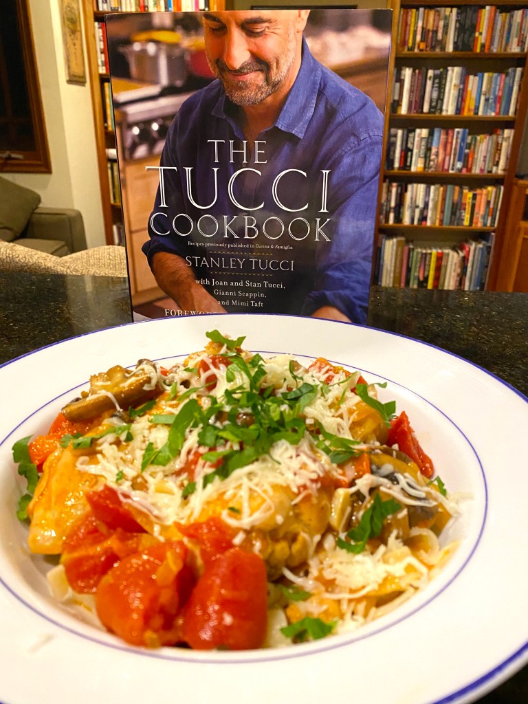 As you can see, Tucci’s cookbook is right in the middle of the stack of the first ten cookbooks I’m using, but his Chicken Cacciatore recipe is anything but average – it’s a meal he has grown up with, passed down for generations in his family!