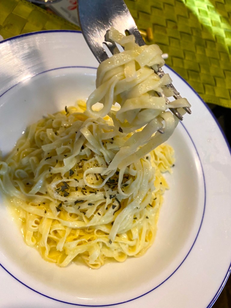 So this is store-bought fresh Fettucine – the other two ingredients are butter and parmesan cheese.