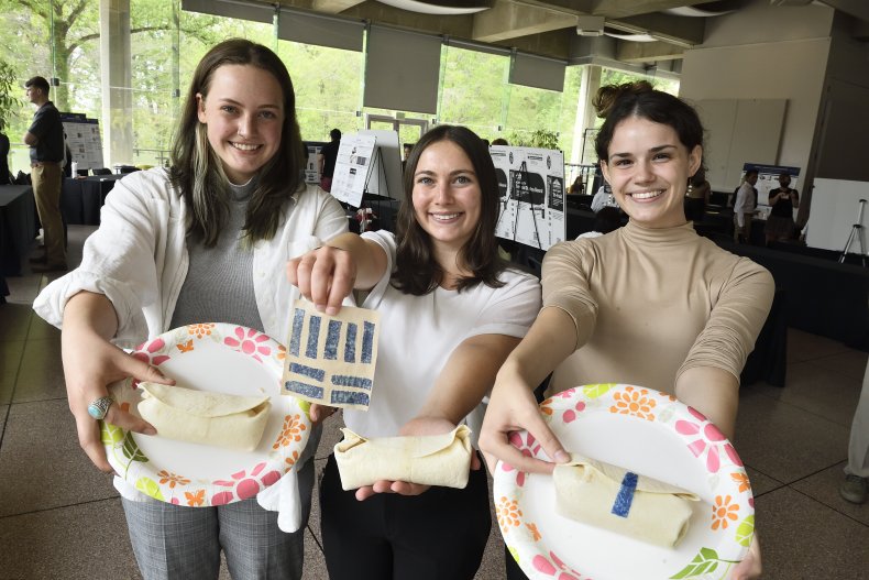 “An all-woman team of Johns Hopkins University undergraduates presented a design for what they call Tastee Tape at an engineering school presentation earlier this month. The food-grade adhesive is meant to keep fillings in a burrito, taco, gyro or wrap. The student designers say the tape is edible, safe and strong, and can be used during cooking or consumption.”
