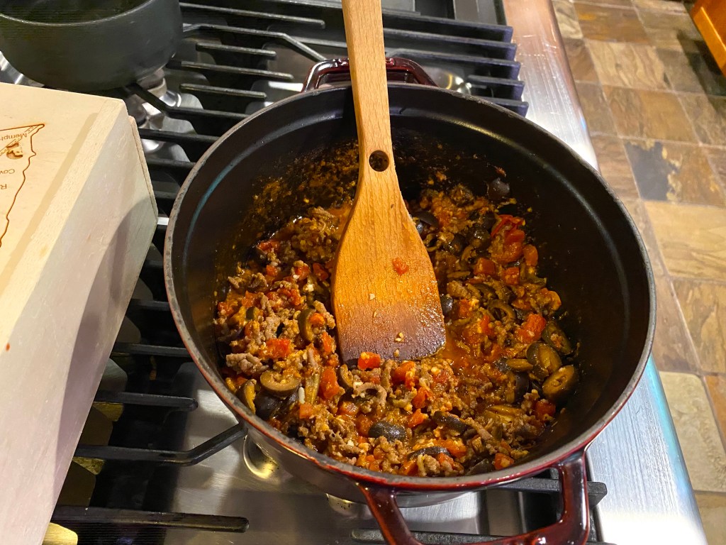 I started by making sauce, because it would need some moisture, I was sure of it!