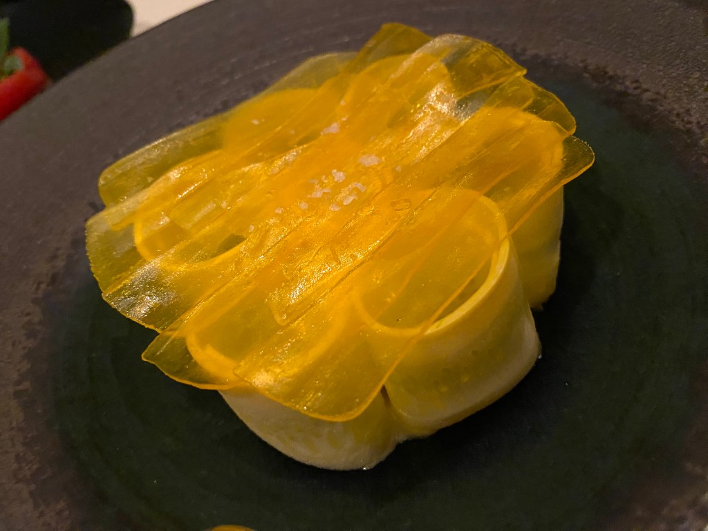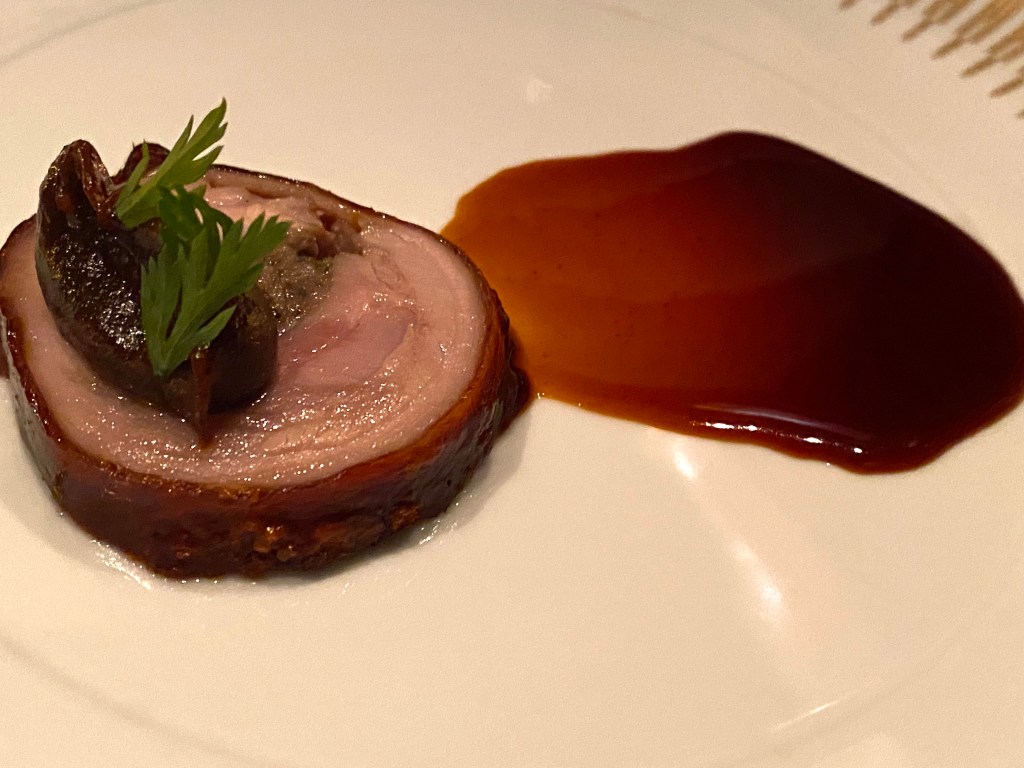 You see, this was the accompaniment to our main meat course: a “Suckling Porchetta” with medjool date. pecorino Romano and oregano…