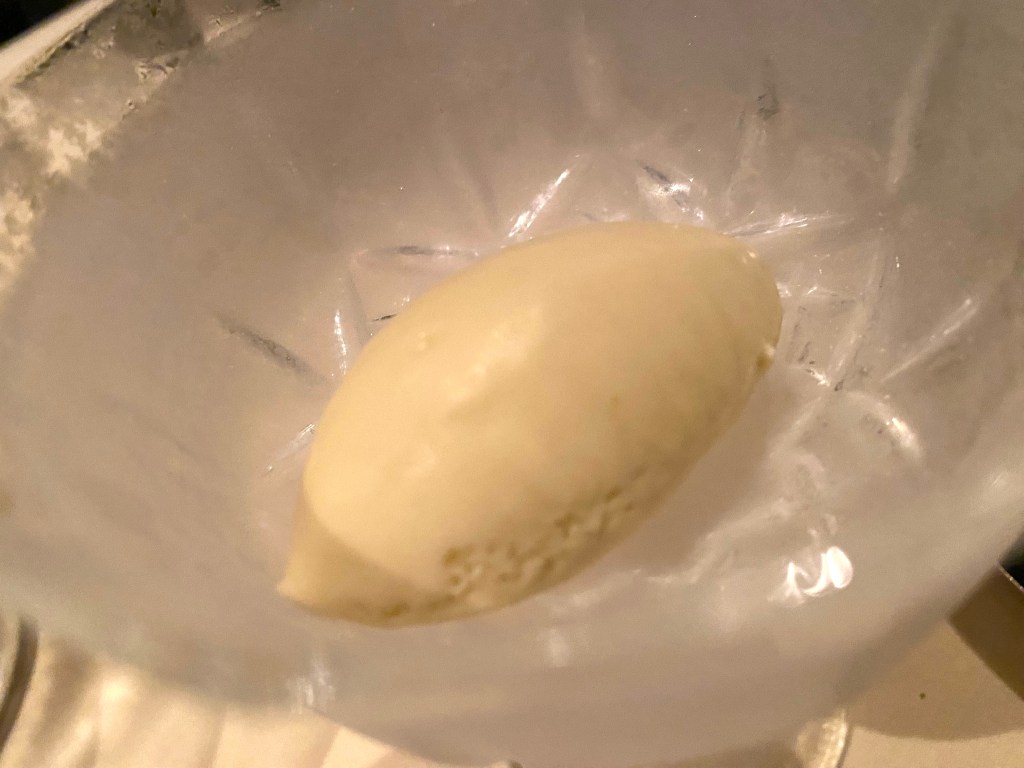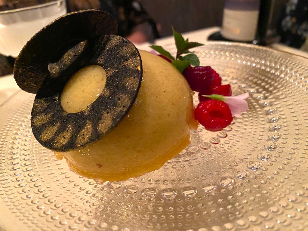 Dinner is finished with two desserts: a “Zuccotto” with milk chocolate ganache and amaretto – and a Gelato of Meyer Lemon and manna extra virgin olive oil!