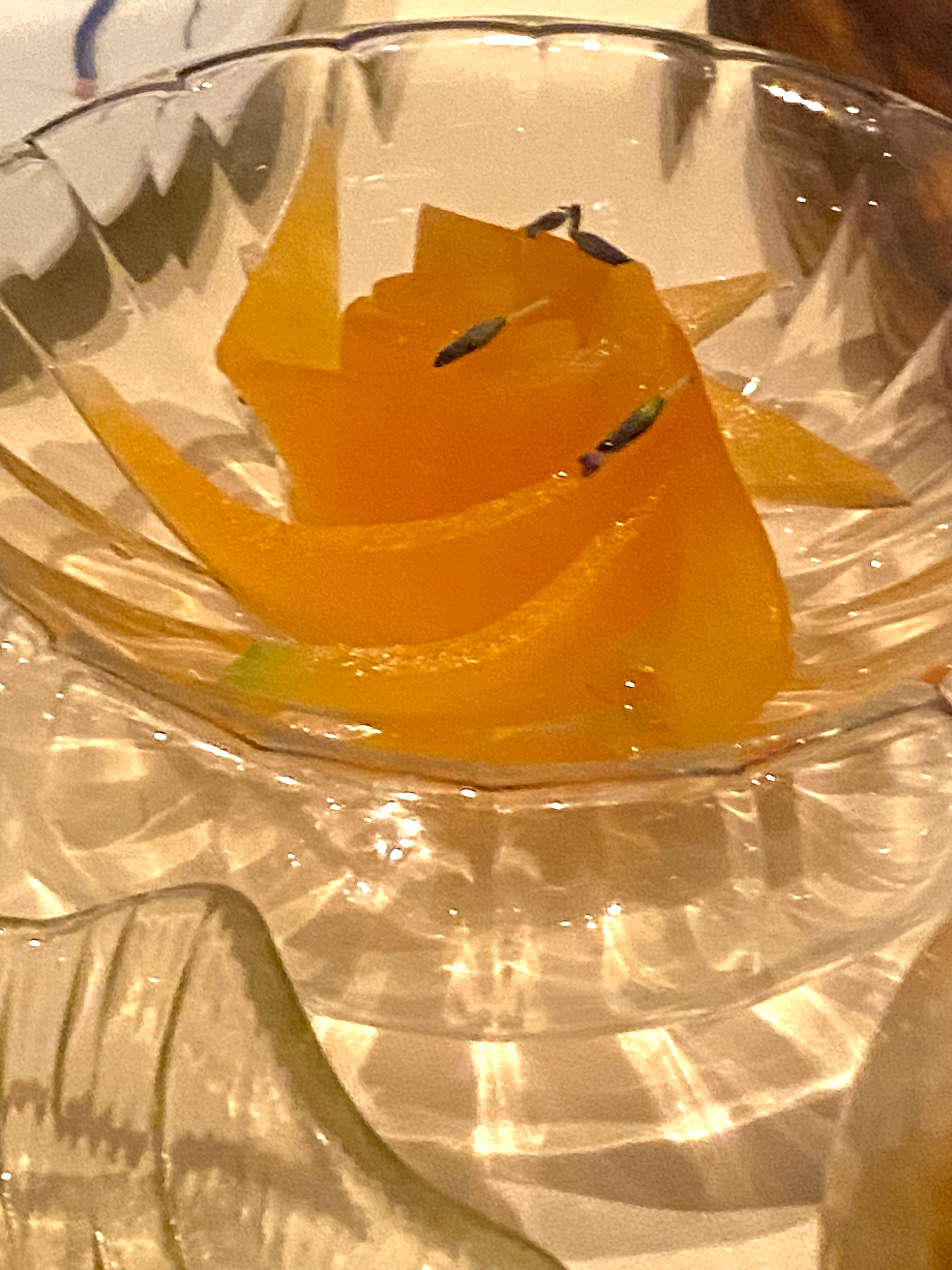 It begins this way…a variety of canapés starting with Crostini de Legato, with chicken liver mousse, caper and shallot…then “Farinata” with crispy chickpea – and lastly some lavender scented cantaloupe…