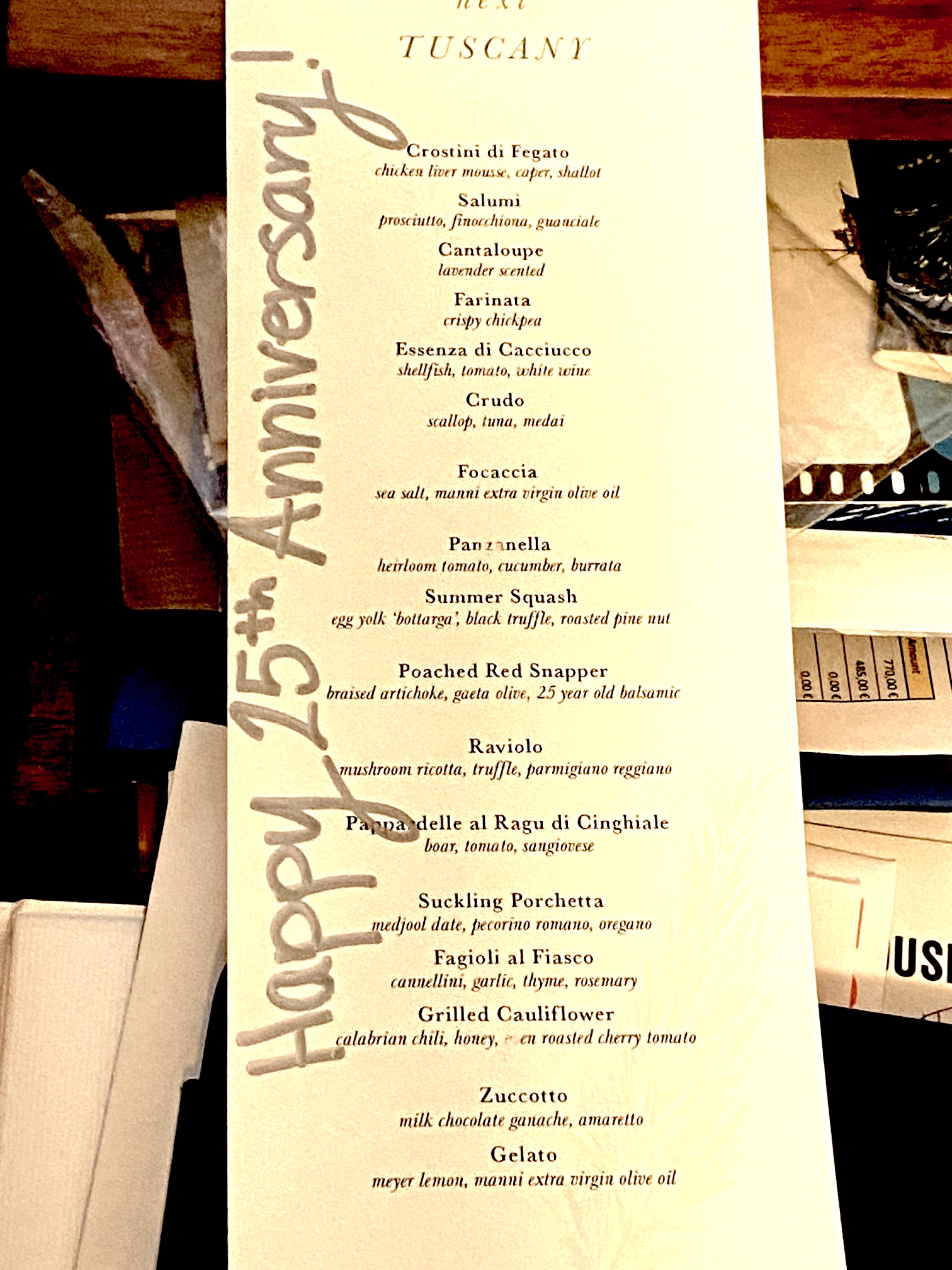 1. Looks like a wonderful anniversary celebration with fantastic dining!