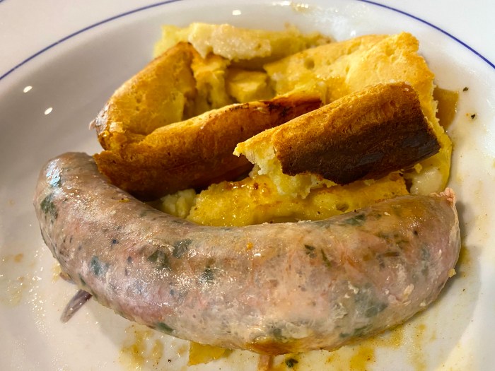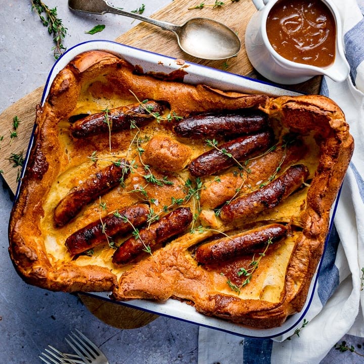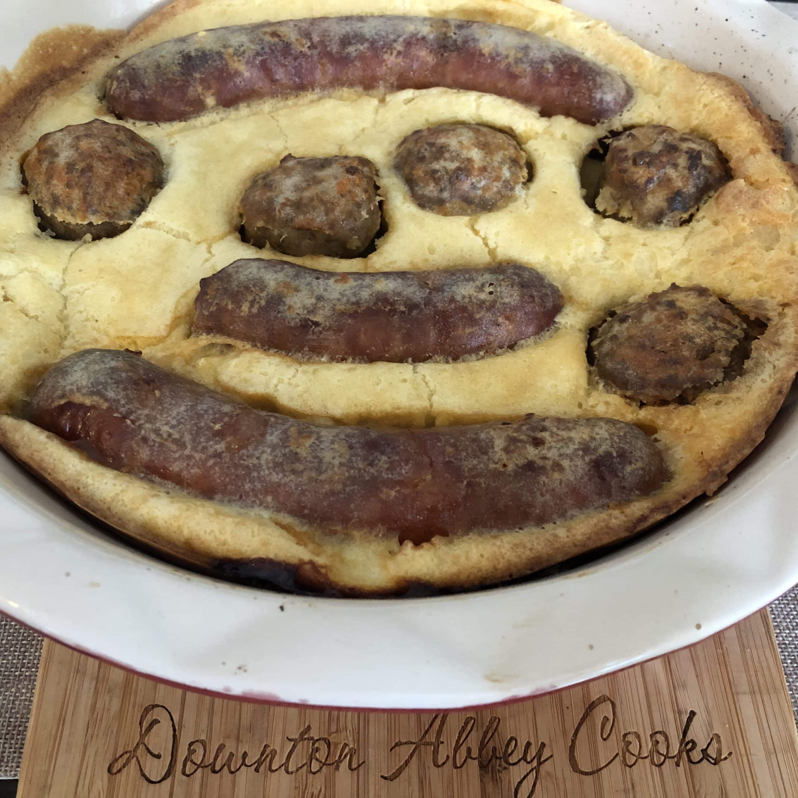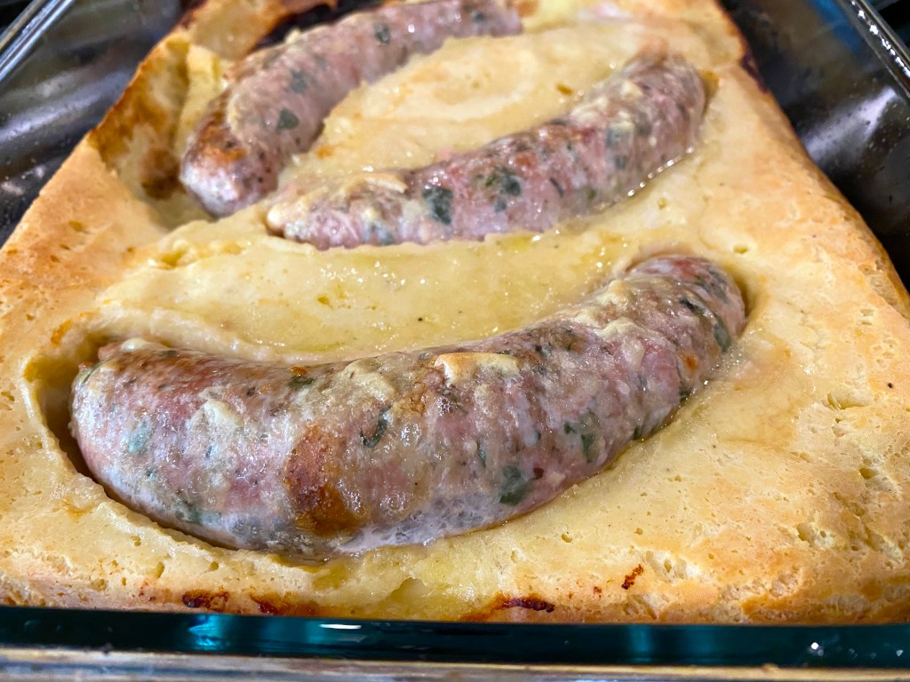 This is a delicious dish – the batter has a crispy exterior and soft interior – much like a Yorkshire pudding – and if you love sausage you can’t go wrong with the combination!