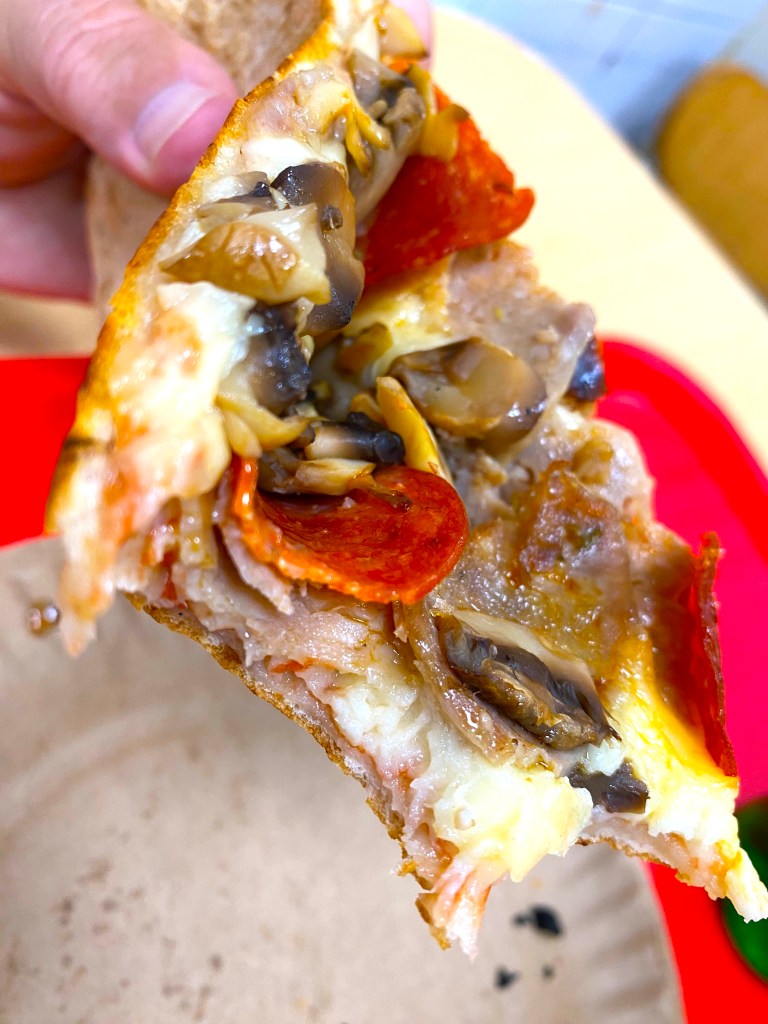 While there wasn’t a lot of sausage there was plenty of pepperoni and mushroom and it tasted great – just like a slice of pizza should!