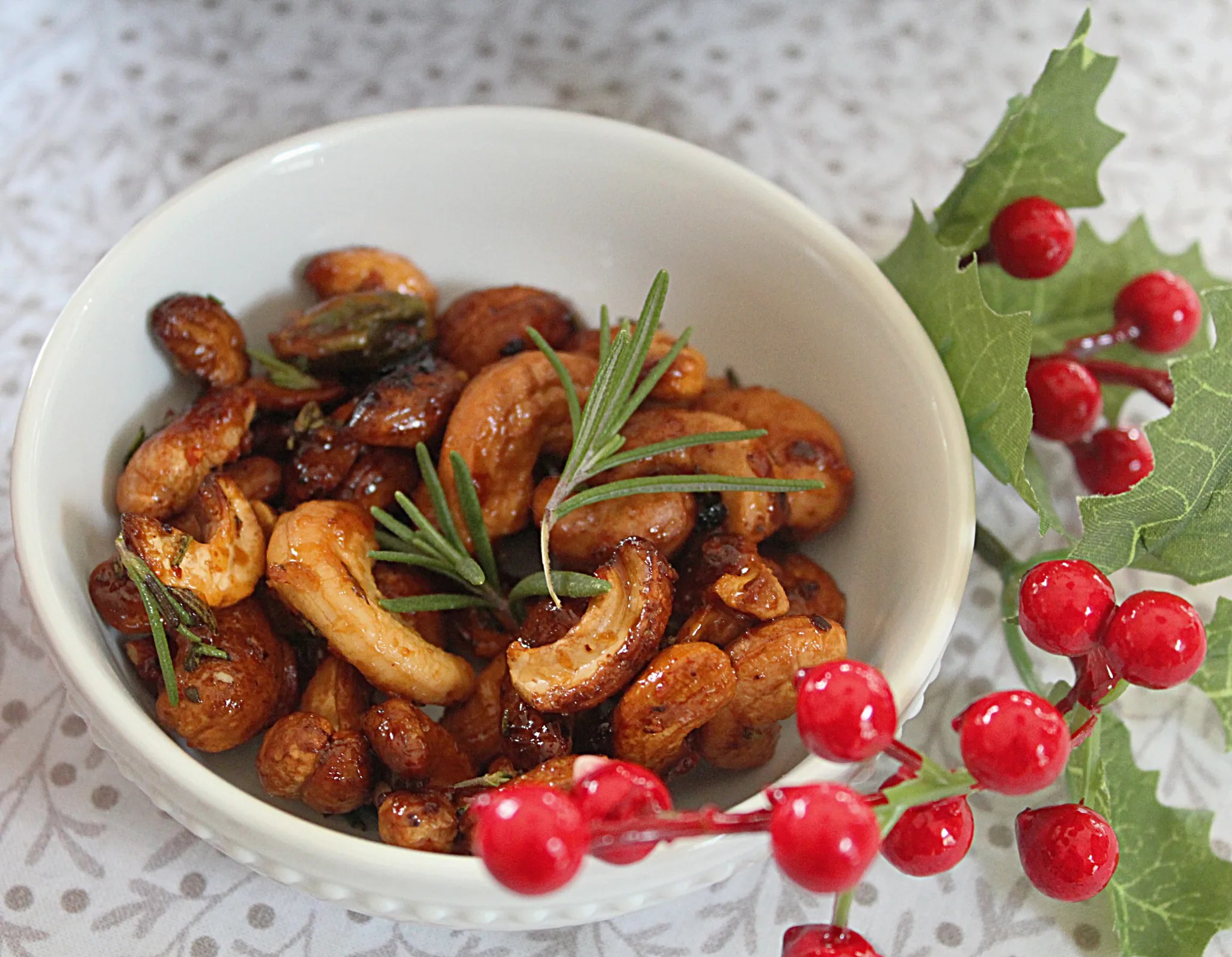 The drink above is called a “Holly And The Ivy”, and what better to serve with it than with these Parisian Rosemary Mixed Nuts!
