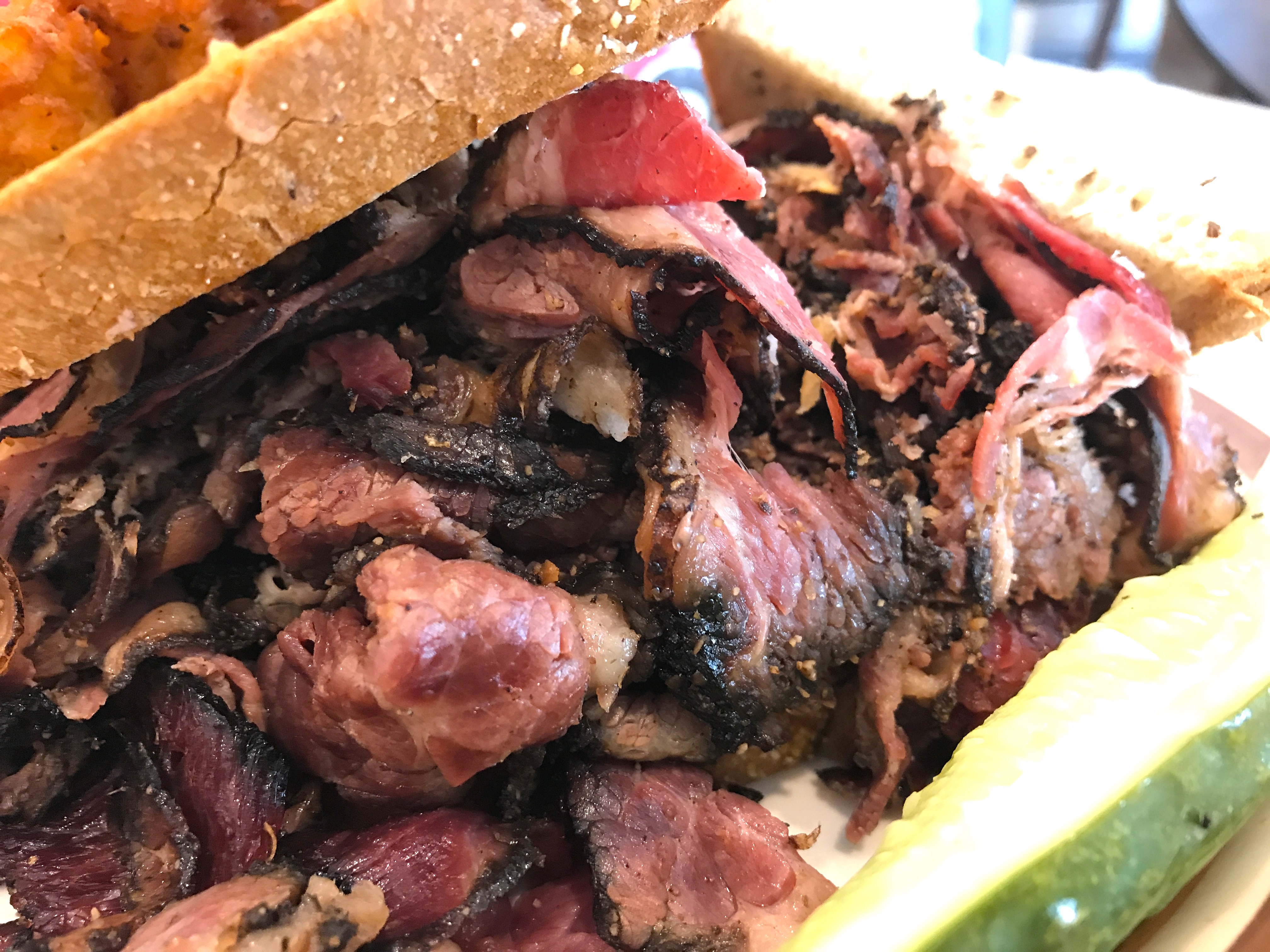 Yes, this is the one to judge a deli by – and it begins with the pastrami, which has to be juicy in the center but crunchy on the edges – like this: