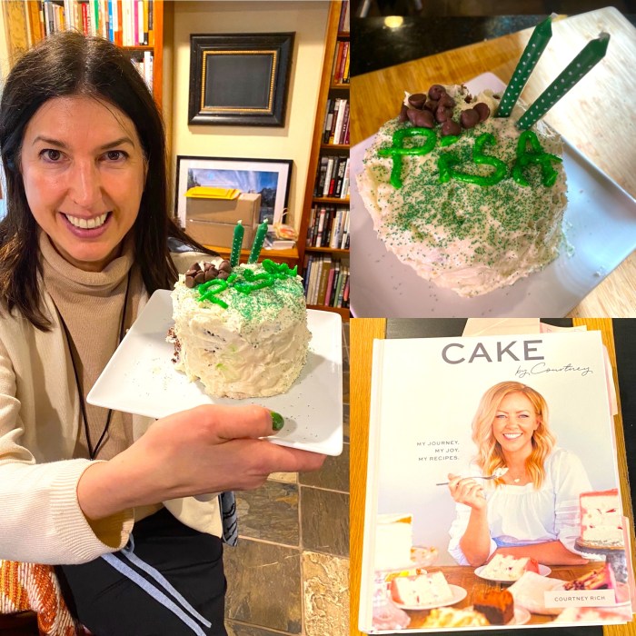 So that’s Alex on the left with her cake, and the terrific cookbook I made it from: so why is the one photo showing the name on top as “Pisa?”