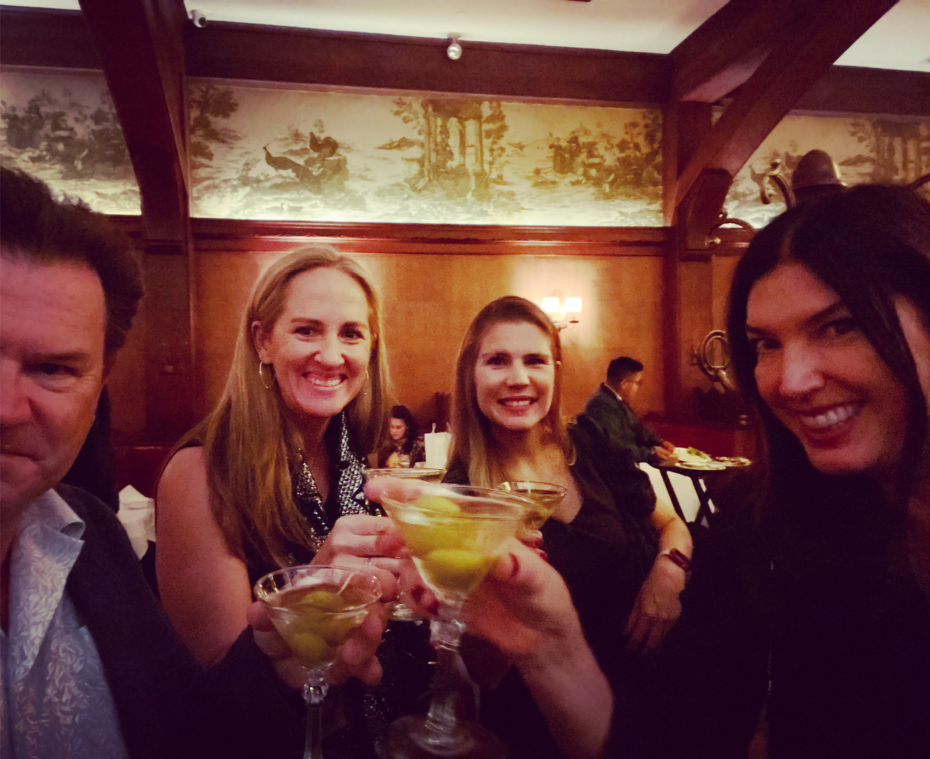 Taht Eleanor next to me, then my daughter Jessica and wife Alex – toasting with one of Musso & Frank’s classic Martinis!