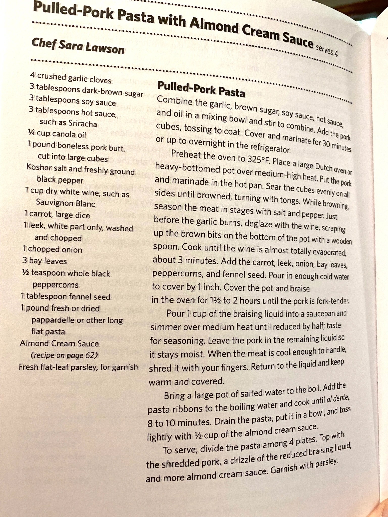 Sara’s Recipe For “Pulled-Pork Pasta With Almond Cream Sauce!“