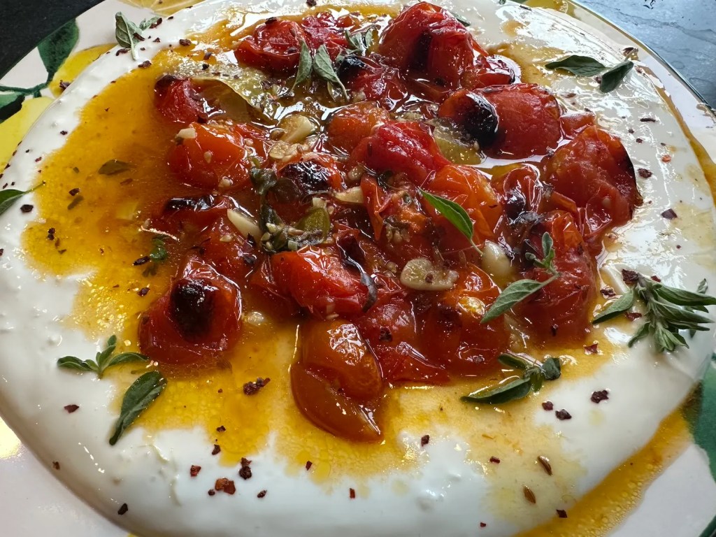 Hot, Charred Cherry Tomatoes with Cold Yogurt!