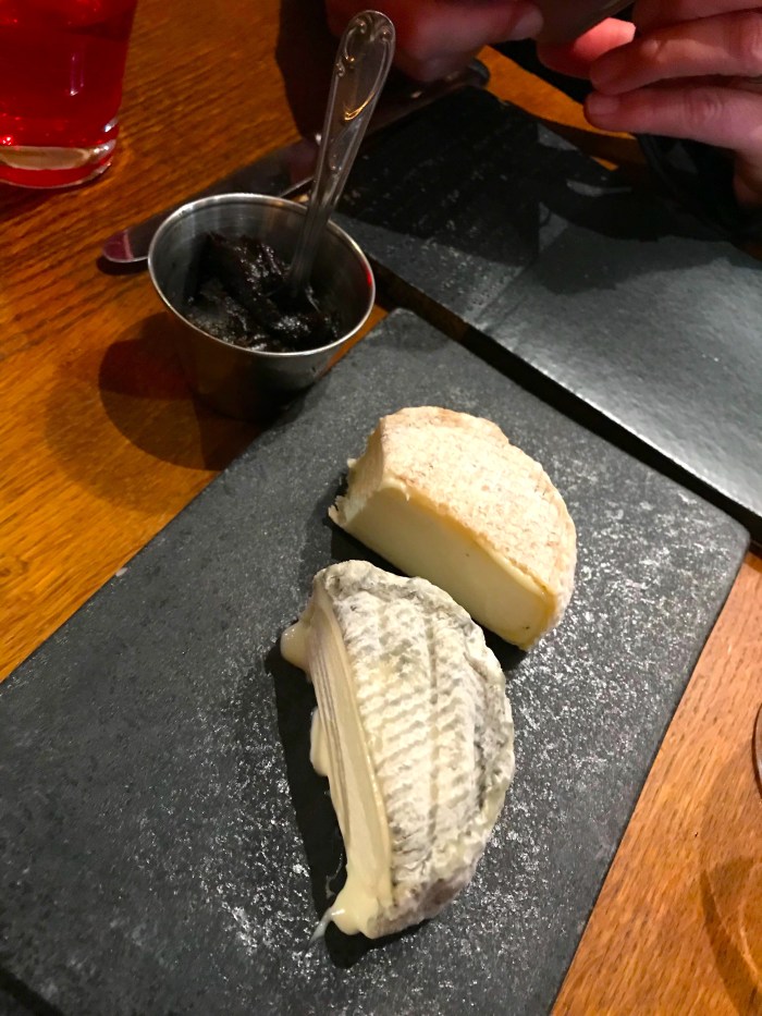 Of course, you can’t go wrong with a side of mashed potatoes, and after you finish with these main courses, they bring you some cheese – served on a slate slab: