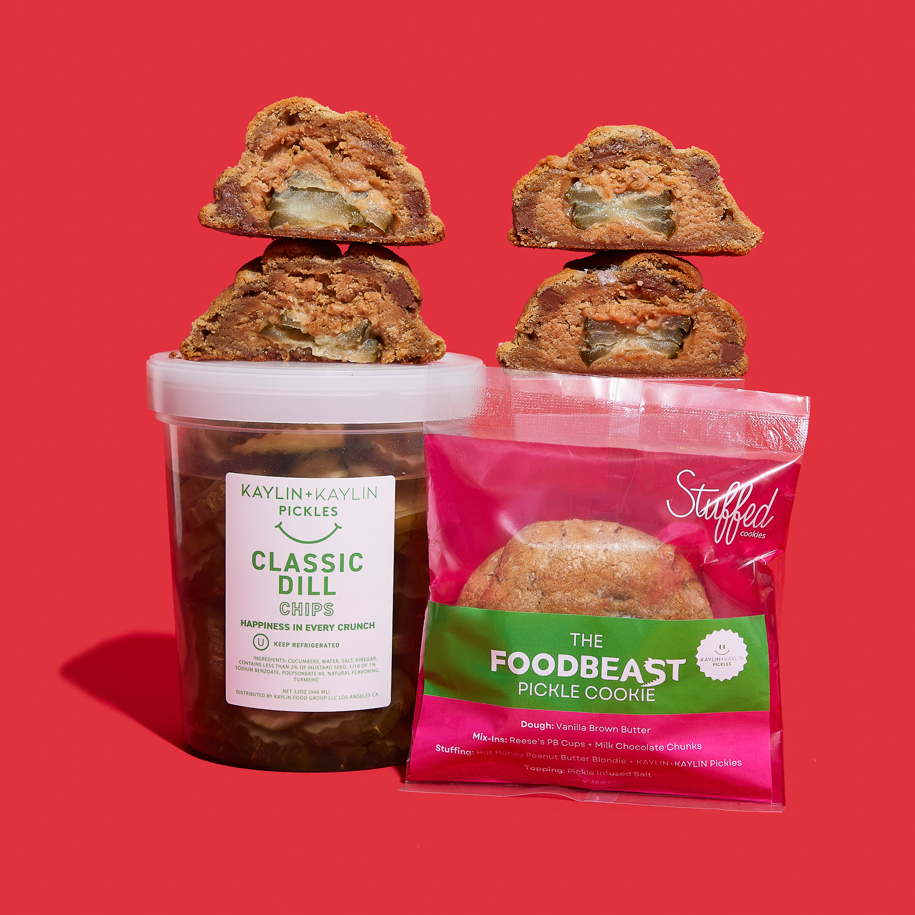 Read that hilarious announcement – these two companies did a wild mashup and we are all the better for it! I love Foodbeast.com – and with the help of their friends at Stuffed Cookies – and their epic pickle partner Kaylin + Kaylin – Stuffed and Foodbeast brought me America’s next favorite food: