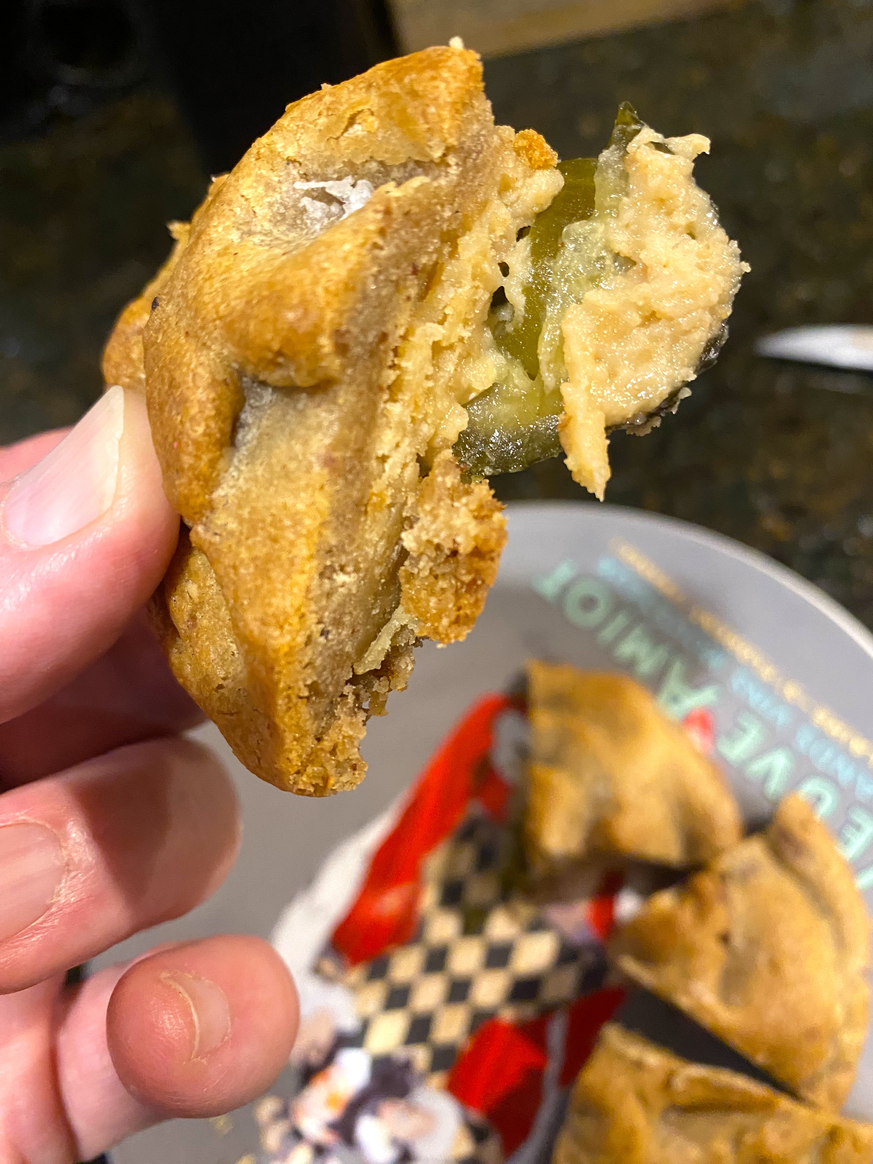 As I said in my video – it was truly delicious! A big chunk of surprisingly crispy pickle was wedged inside the cream goodness of vanilla brow butter cookie dough, warmed up gently for a few minutes to reveal this bite: