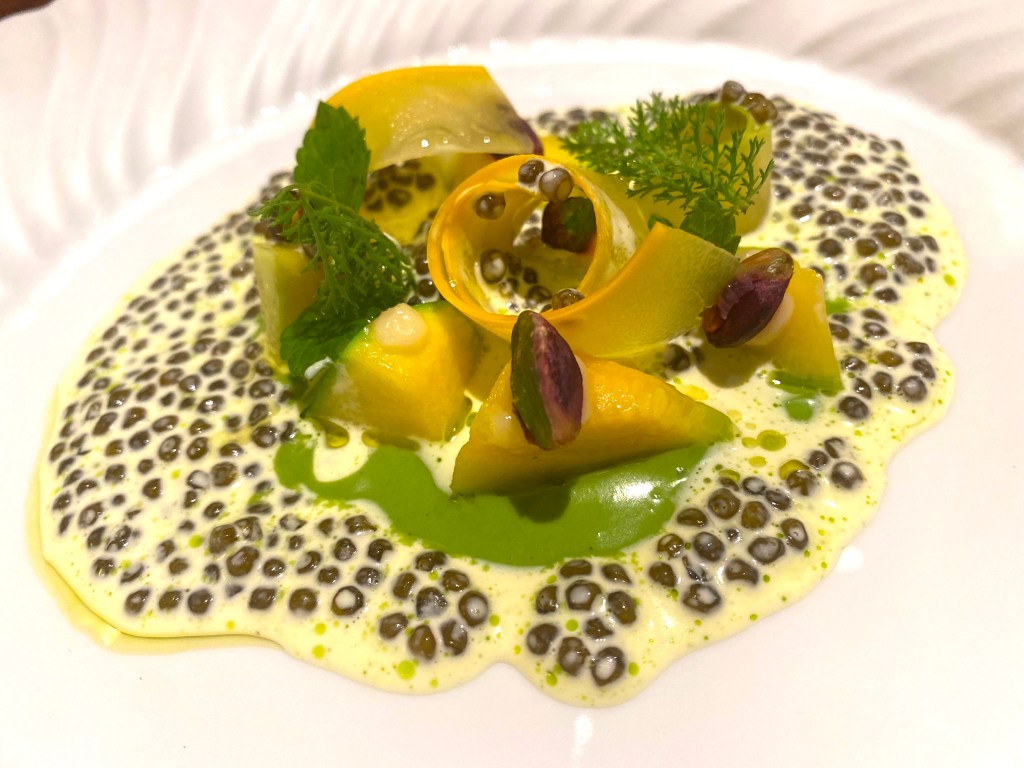 This was shaved melon, which is in season and incredibly delicious, topped with a creamy caviar sauce…it’s from David Toutain, a two-Michelin star restaurant that is to die for…here is video proof: