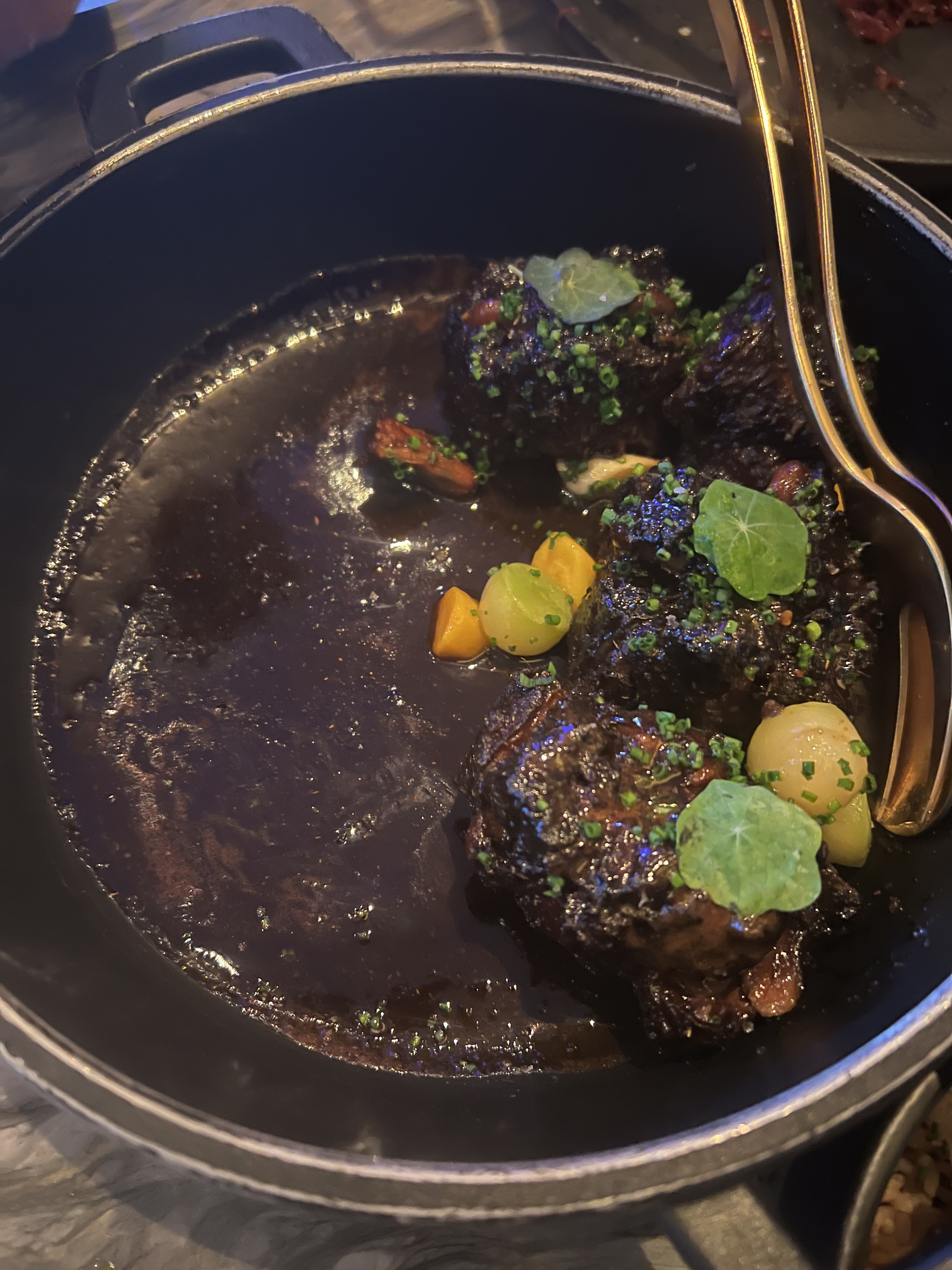 This dish is mind-blowing – the short rib pastrami suya—brined in Jewish deli spices before marinating in Nigerian ones, then braised for hours