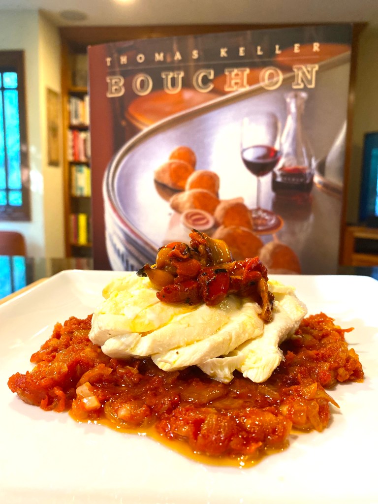 As the cookbook says, “piperade” is simply a combination of roasted sweet bell peppers and when combined with deeply cooked onions, becomes a “Soffrito”.