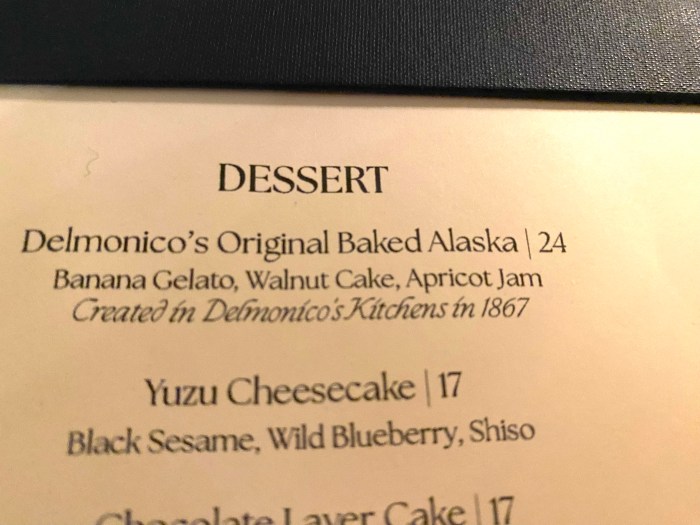 As you can see, that is Banana Gelato, walnut cake and apricot jam – or a close proximation of those ingredients for the purpose of showing you the inside…so there you have it, a feast at Delmonico’s worth revisiting!