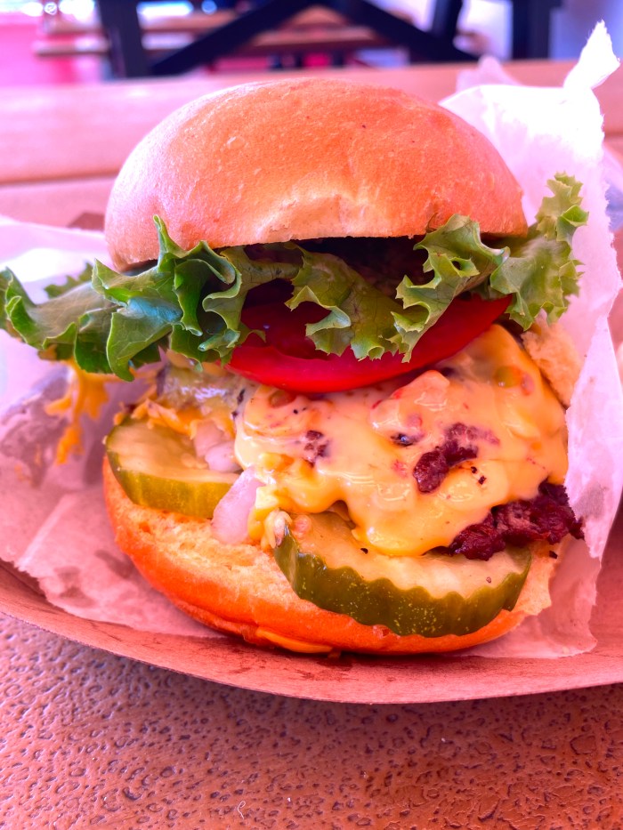 This is the last burger in the US, because you eat it on a pier sitting over the Pacific Ocean!