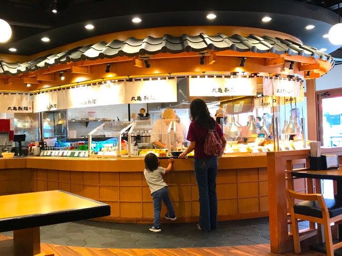 On the westside of Los Angeles, west of the 405 and north of Olympic there is a neighborhood known officially as Sawtelle Japantown, and there are many terrific restaurants lining the street. Many in the area also call it “Little Osaka” as well…either way, there are terrific ramen restaurants including Marugame Udon – which is a terrific Ramen Noodle and Tempura Bar – where everything is served cafeteria style!
