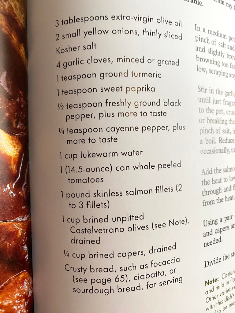 Spiced Tomato Stew with Poached Salmon and Olive!