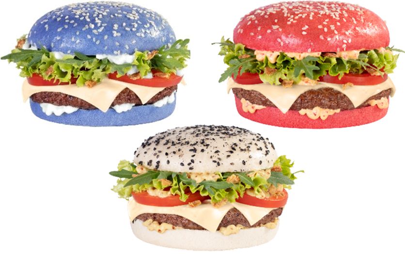 The French hamburger chain Quick had a special menu for the Olympics, with three colorful new burgers to try!