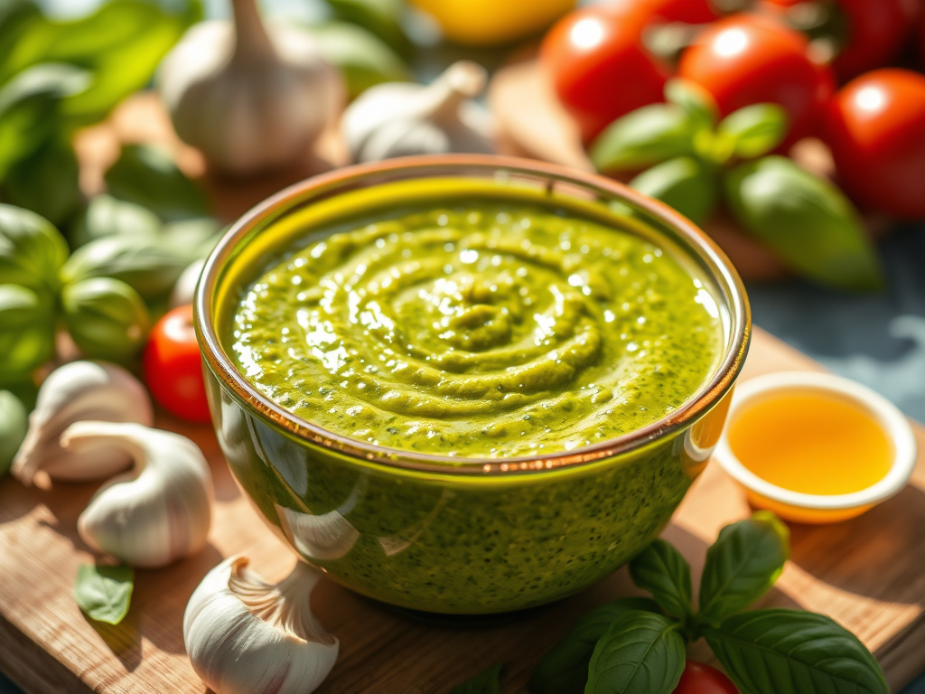 Pistou is an uncooked sauce that comes from France’s Provence region and typically contains basil, garlic and olive oil. Blend the fresh raw garlic and fresh basil, then slowly drizzle in olive oil!