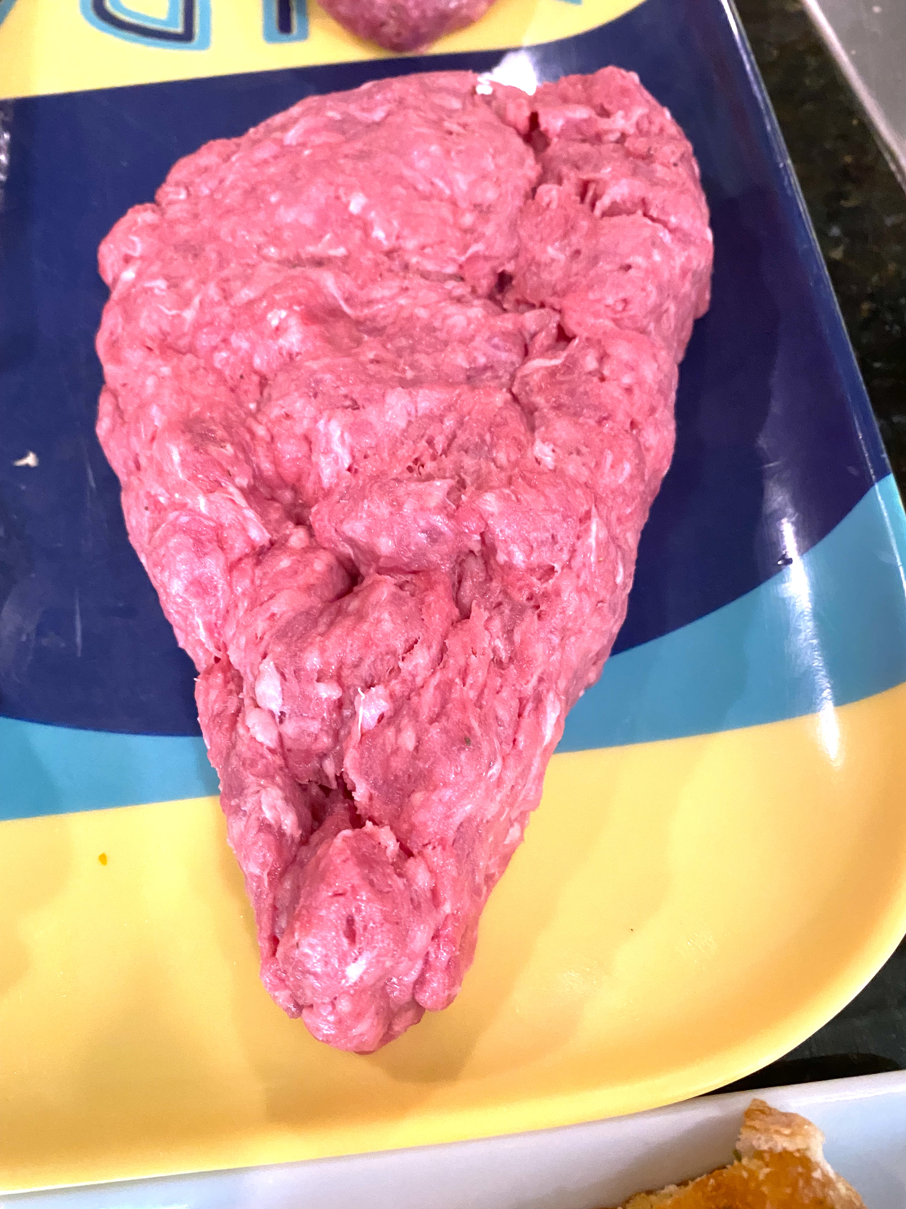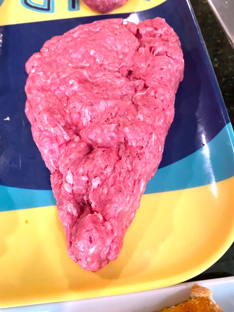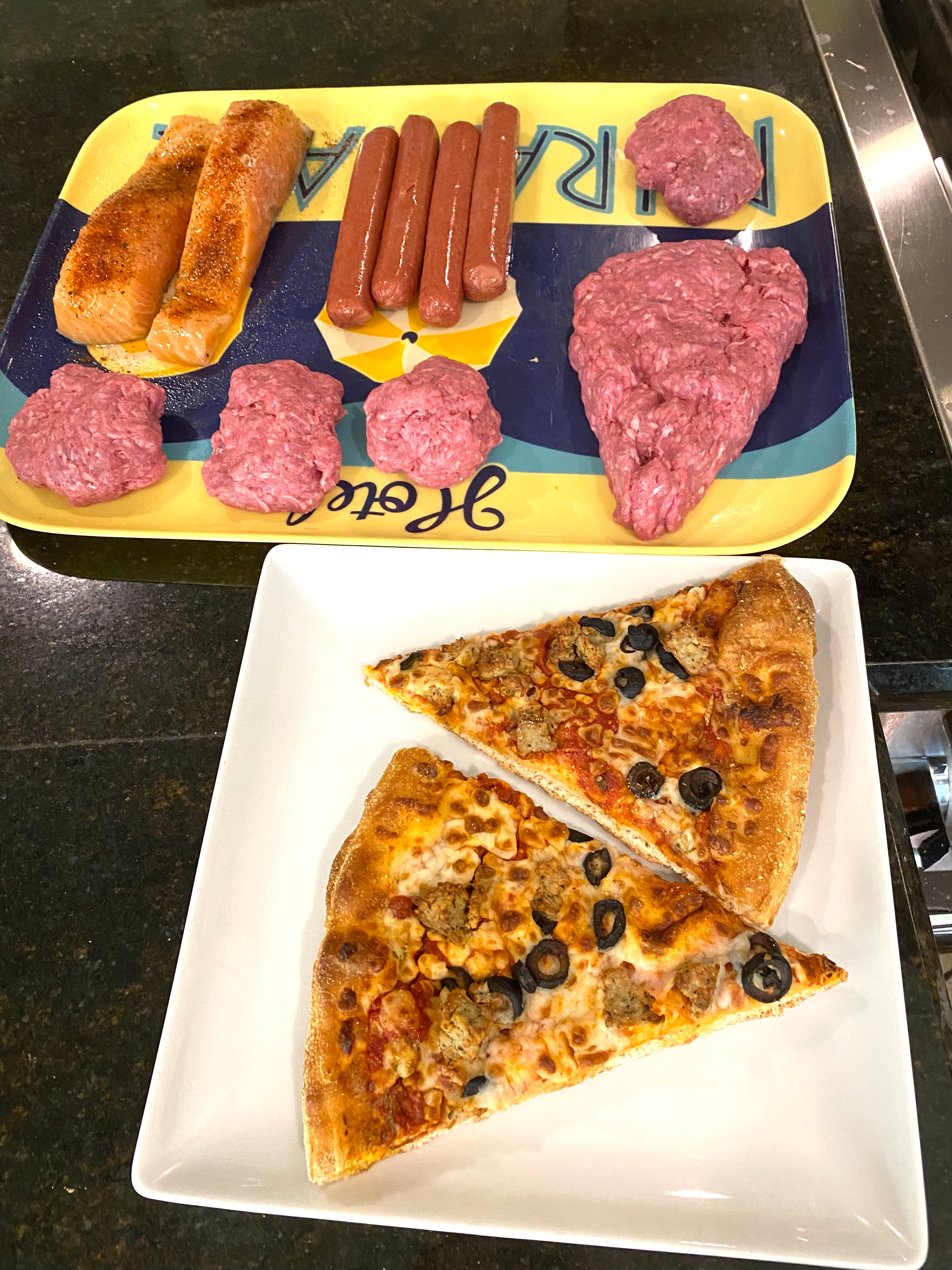 It was part of a outdoor grilling feast, so on the grill went some salmon, hot dogs, sliders and of course, that pizza-shaped burger: