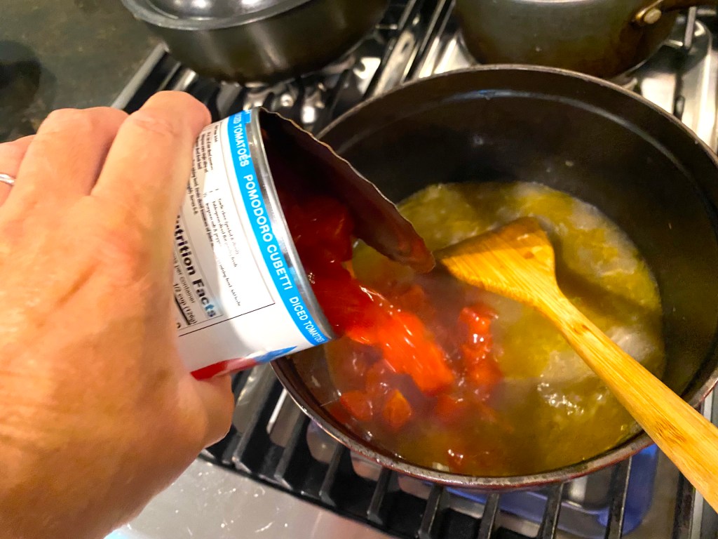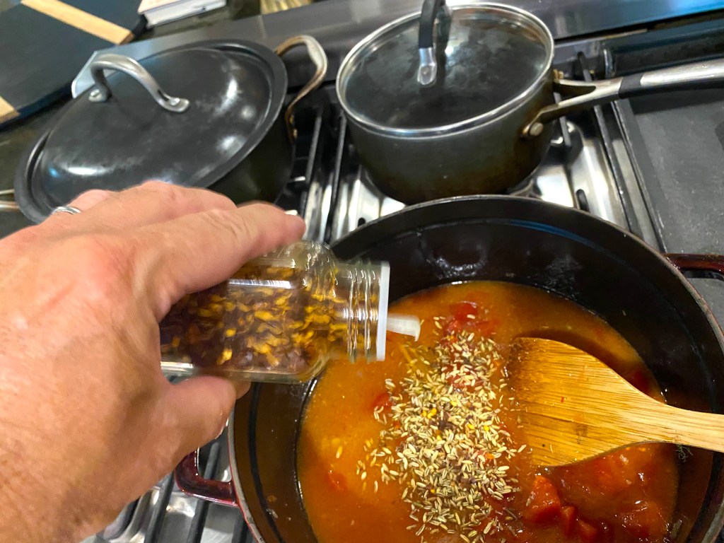 Once that has been in the pot for ten minutes cooking in olive oil, it’s time to bring out the big guns: