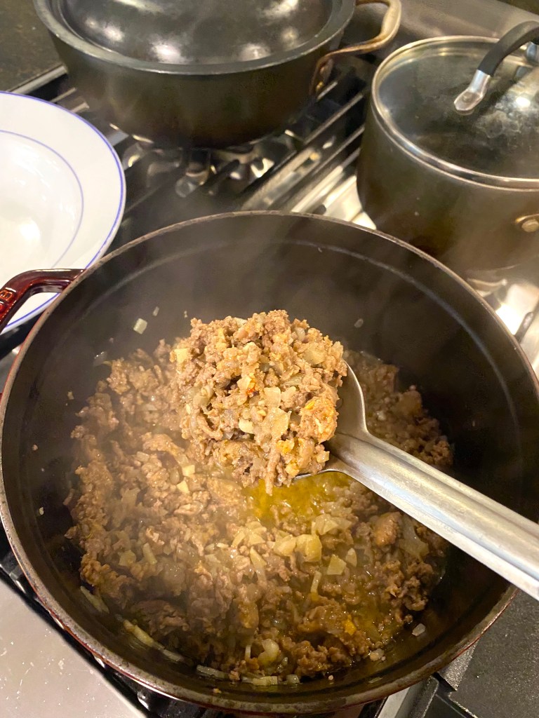 I used regular Italian sausage but Chef likes spicy – and of course ground beef…cooking for 10-12 minutes until cooked through…
