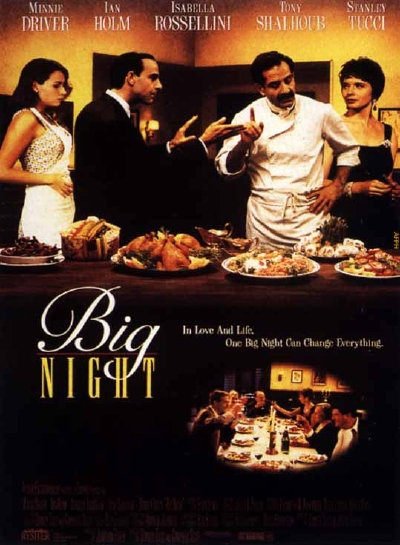 Stanley Tucci and Tony Shalom head the cast of this terrific 1996 love letter to food, and the very special dish they make to impress a big celebrity who is scheduled to arrive that night for dinner – a “Big Night” indeed:
