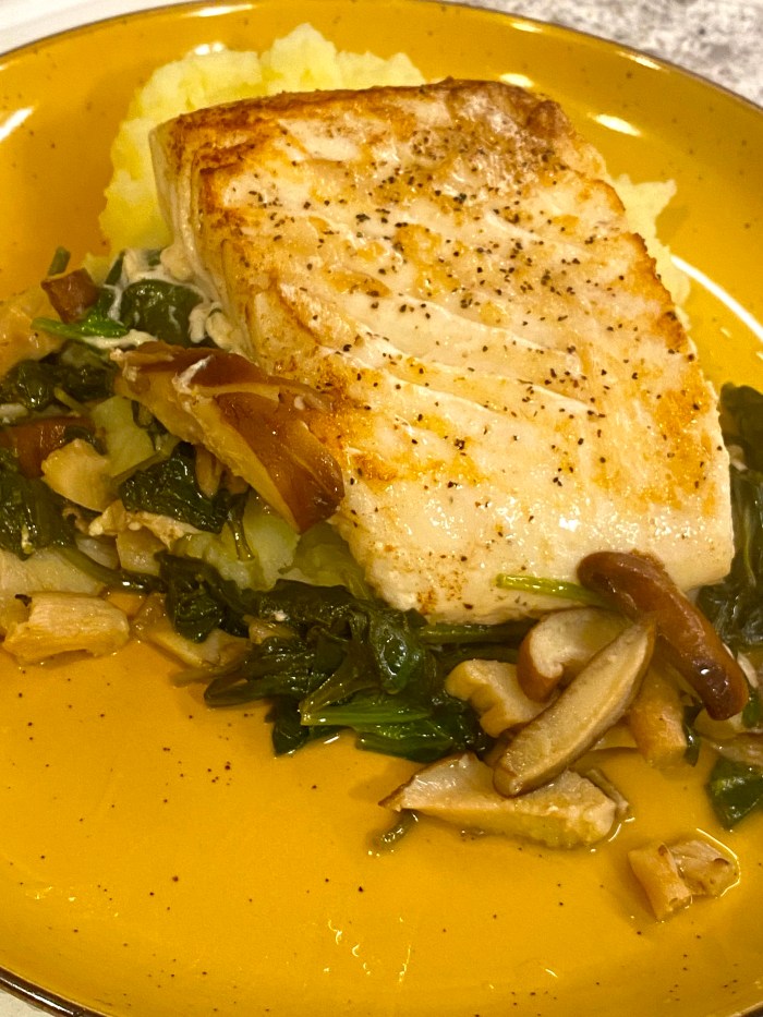 I also made a great Halibut recipe, served over Mushrooms and Spinach: