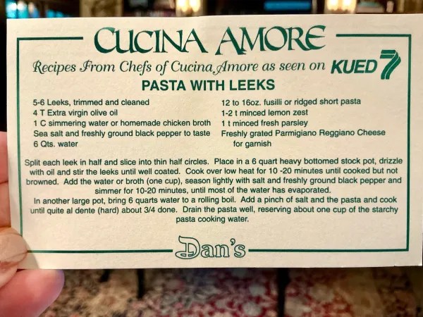 Chef Mimi loves to share great recipes like this one – a “pasta with leeks” dish, and here’s a great story she shared as well: