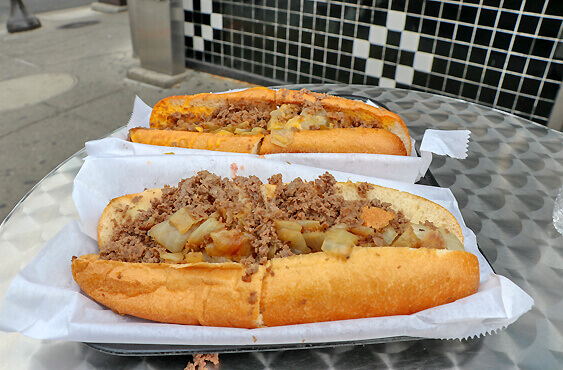 “According to Philadelphians, you simply cannot make an authentic Philadelphia Cheese Steak sandwich without an authentic Philadelphia roll. The rolls must be long and thin, not fluffy or soft, but also not too hard. They also say that if you are more than one hour from South Philly, you cannot make an authentic sandwich. With cheese, it is a cheese steak or “cheesesteak.” Cheeze Whiz is the topping of choice for serious steak connoisseurs.”