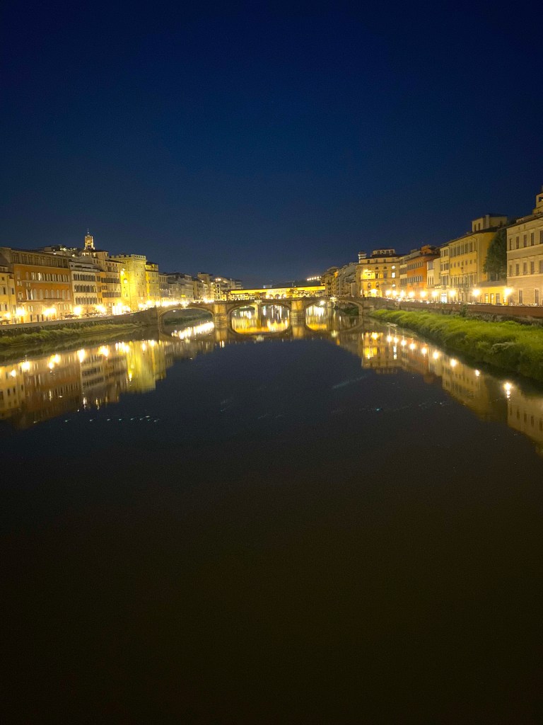 The Ponte Vecchio bridge over the Arno river is stunning any time of day, but here’s how it looks at night: