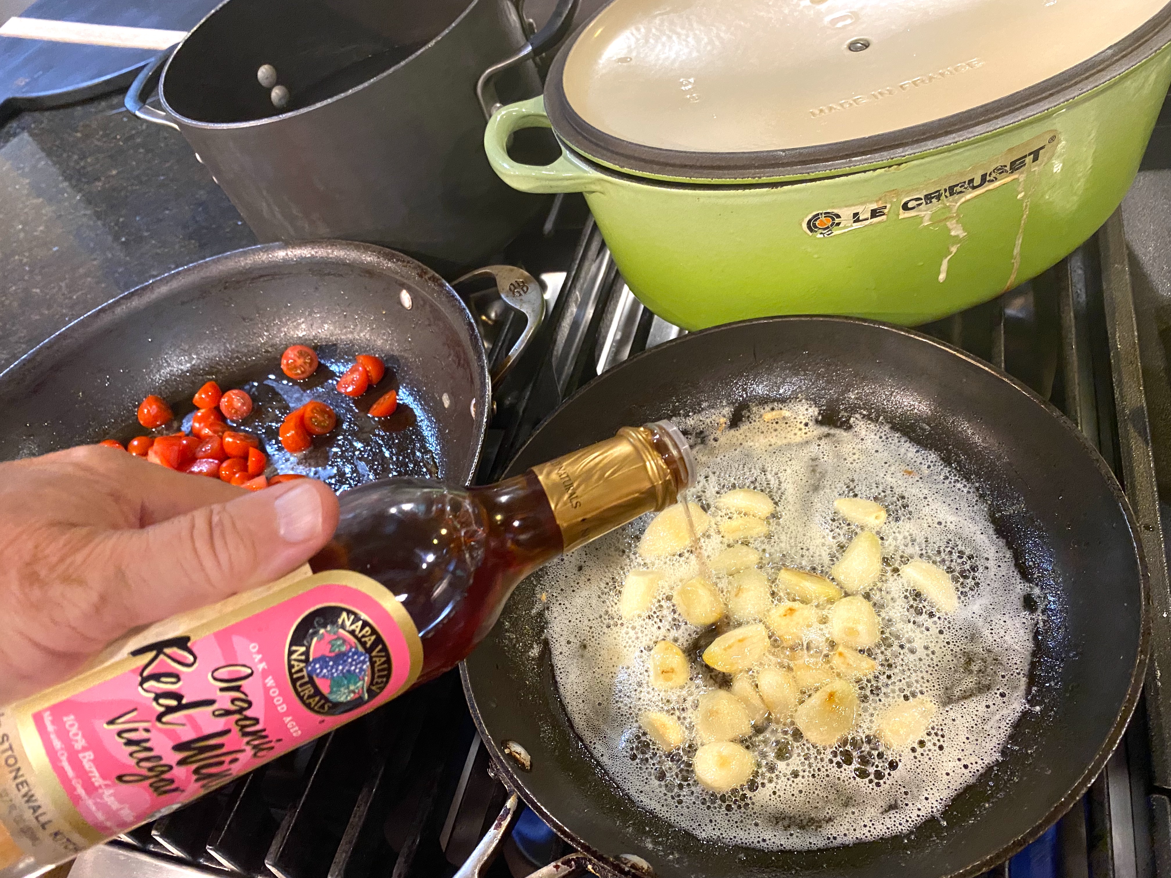 I love all of the books of hers I have, except for Vegetable Harvest. I’ve not heard of any recent publications. This recipe is fantastic. The vinegar is an interesting addition to the sautéing garlic cloves! Do you own Trattoria by Ms Wells? It’s the Italian version of Bistro.