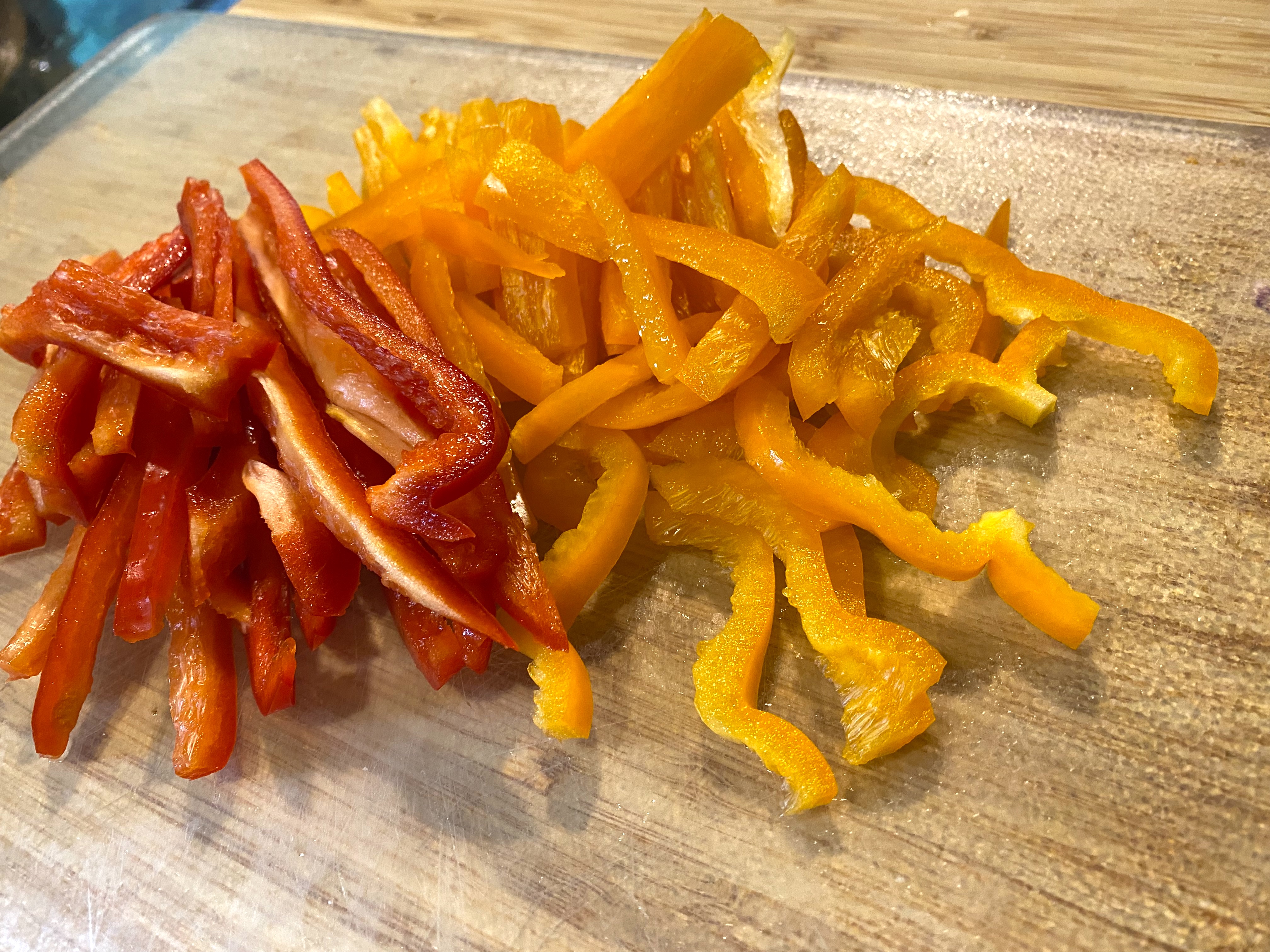 3 large bell pepper, cored, halved, seed and cut lengthwise into thin slices
