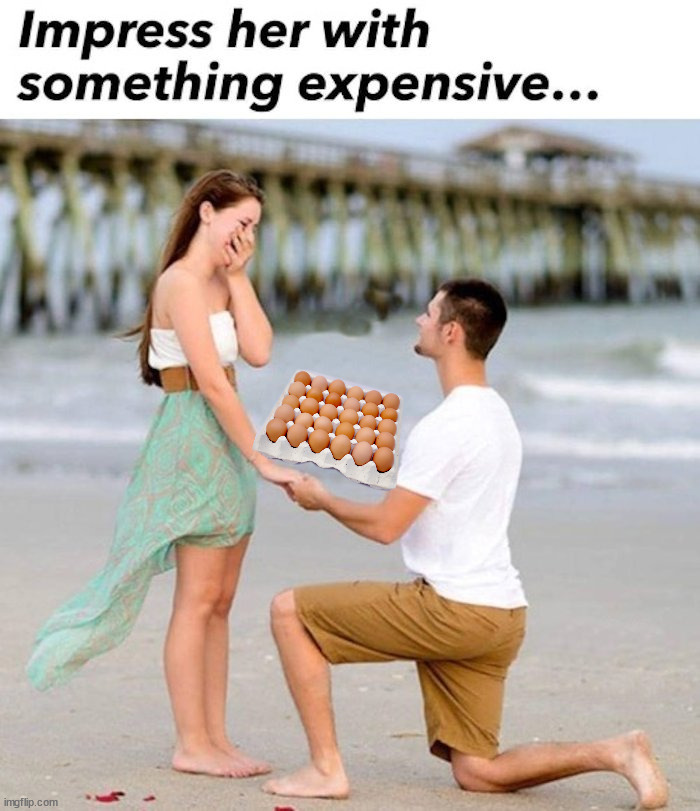 This is not a political story AT ALL – regardless of promises made about food prices, this is a story of how a virus decimated and disrupted our egg supply, leading to many stores rationing eggs…some have cut back, while others sucked it up and had a bit of fun with the high prices: