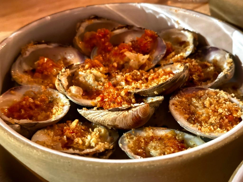 These grilled clams are one of the signature dishes, powerful pools of clam goodness as you dredge them out of the shell to get all of those slightly crispy breadcrumbs!