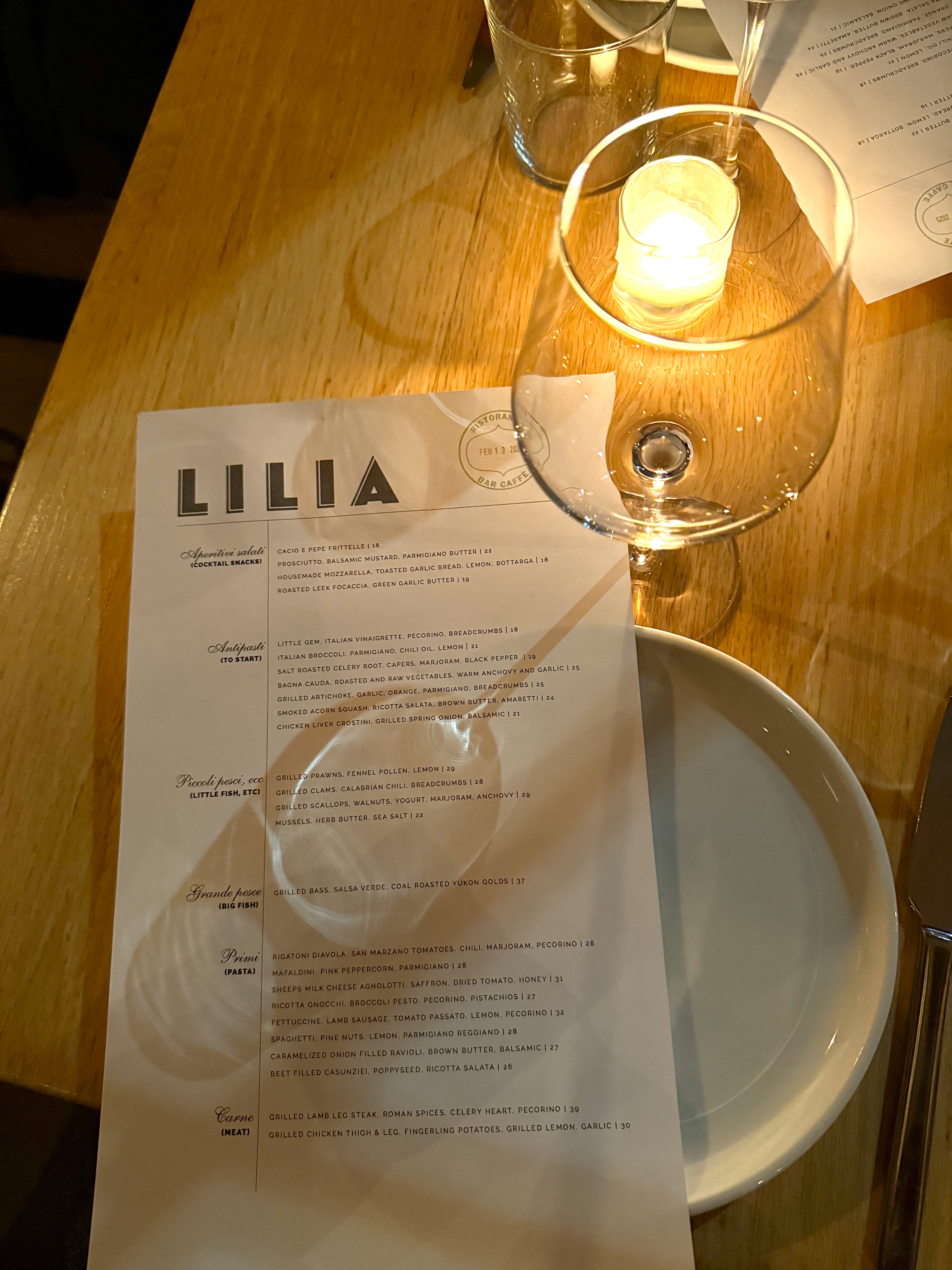 “Lilia brings the best of Italy to Williamsburg where wood-fired seafood, hand crafted pastas, classic Italian cocktails and warm hospitality come together to create a casual dining experience.”