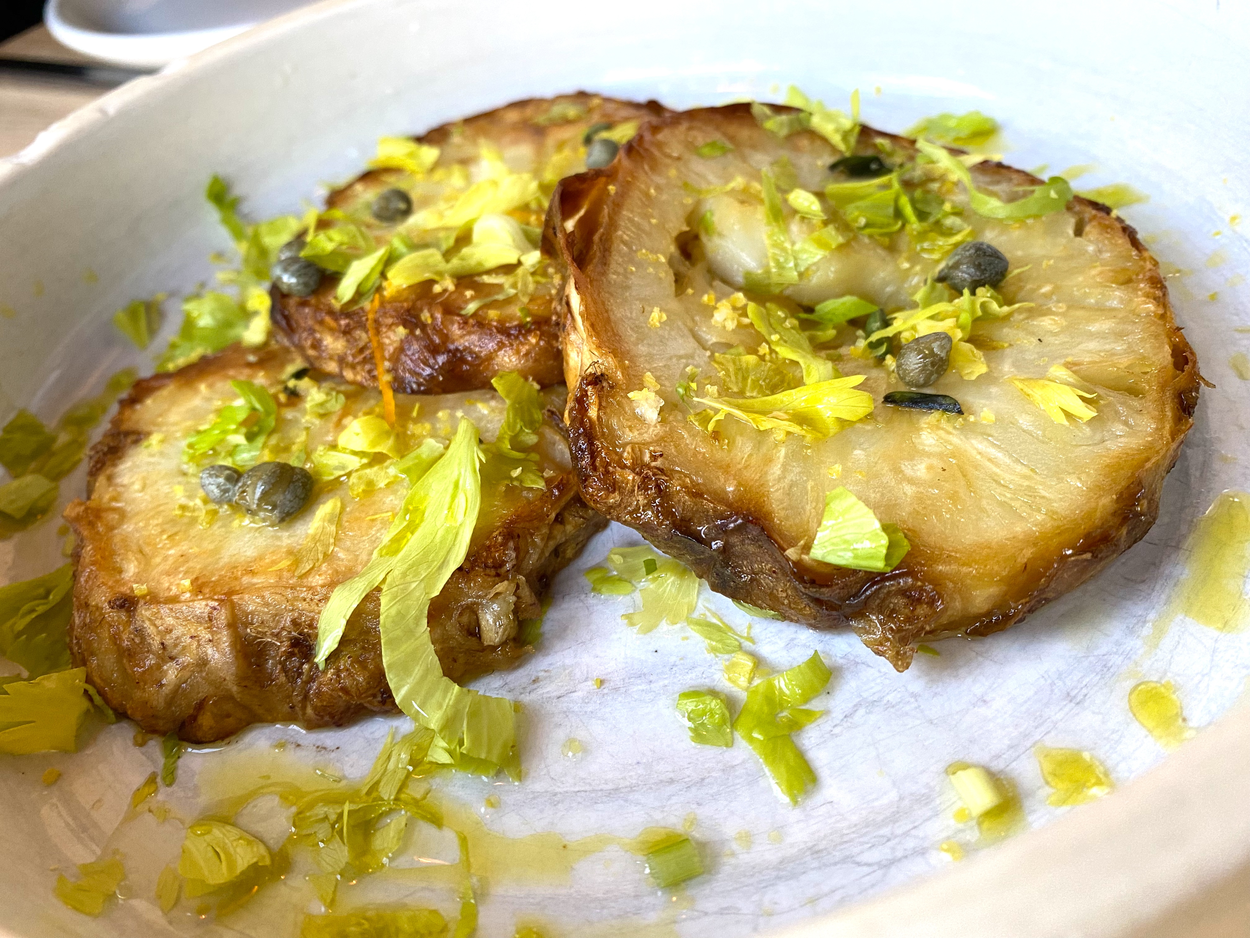 Salt Roasted Celery Root, Capers, Marjoram, Black Pepper
