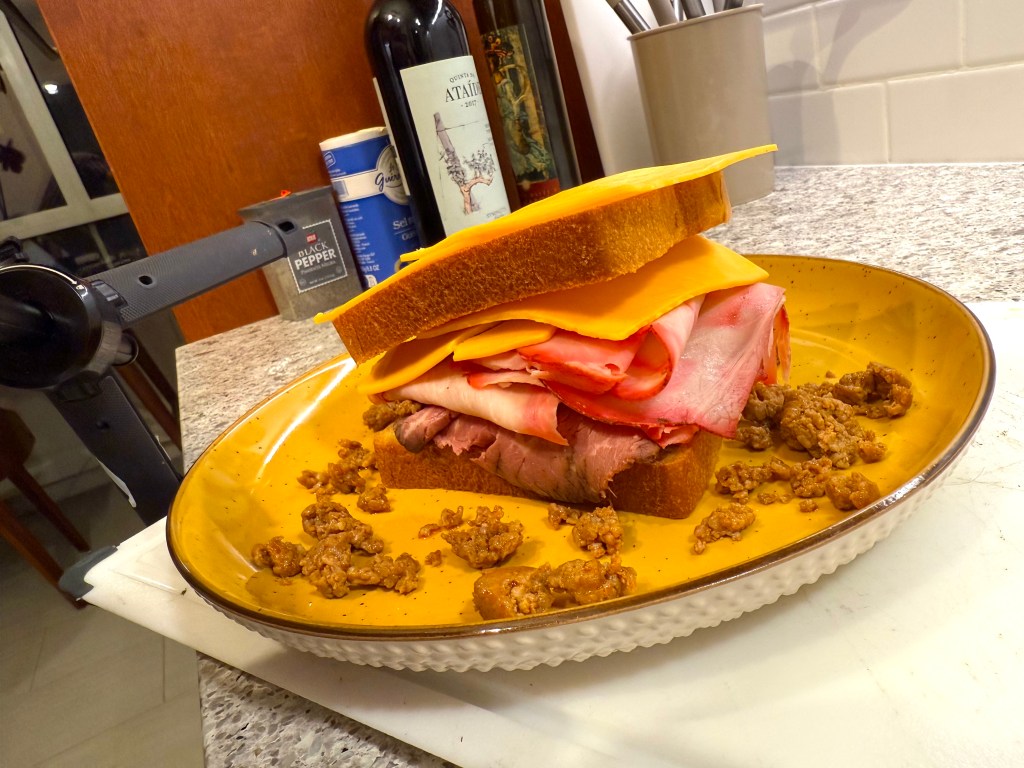 Very interesting! I caught that in the video! I’ve been cooking for over 40 years, and I can just “feel” pours. That one was heftier than 2 ounces for sure! And I really don’t like tasting alcohol in foods really, although I it in glasses! Great sandwich.