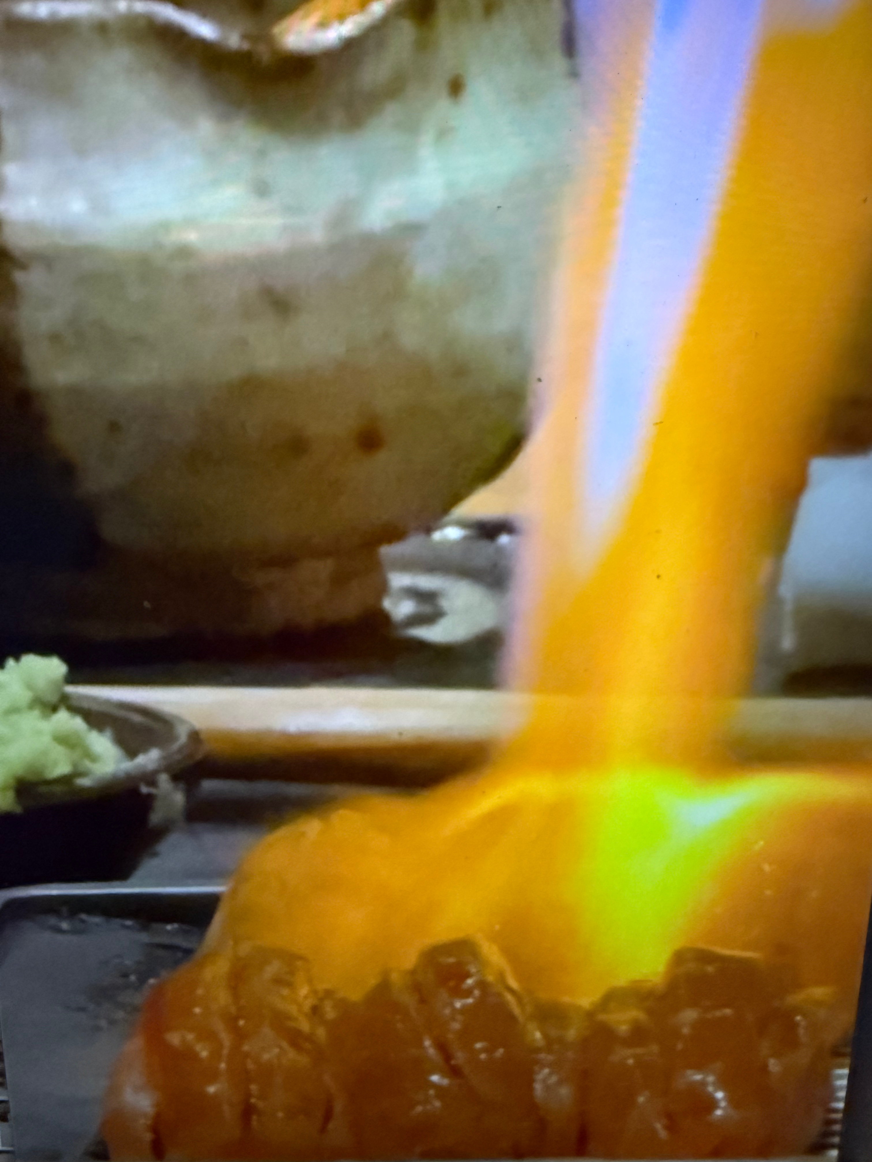 Probably not a question you get asked much, but I’ve noticed lately that most of the sushi bars I go to in New York offer up a few dishes that have been “scorched” a bit…and this “fiery” trend is growing: last night I shot this video in a New York restaurant: