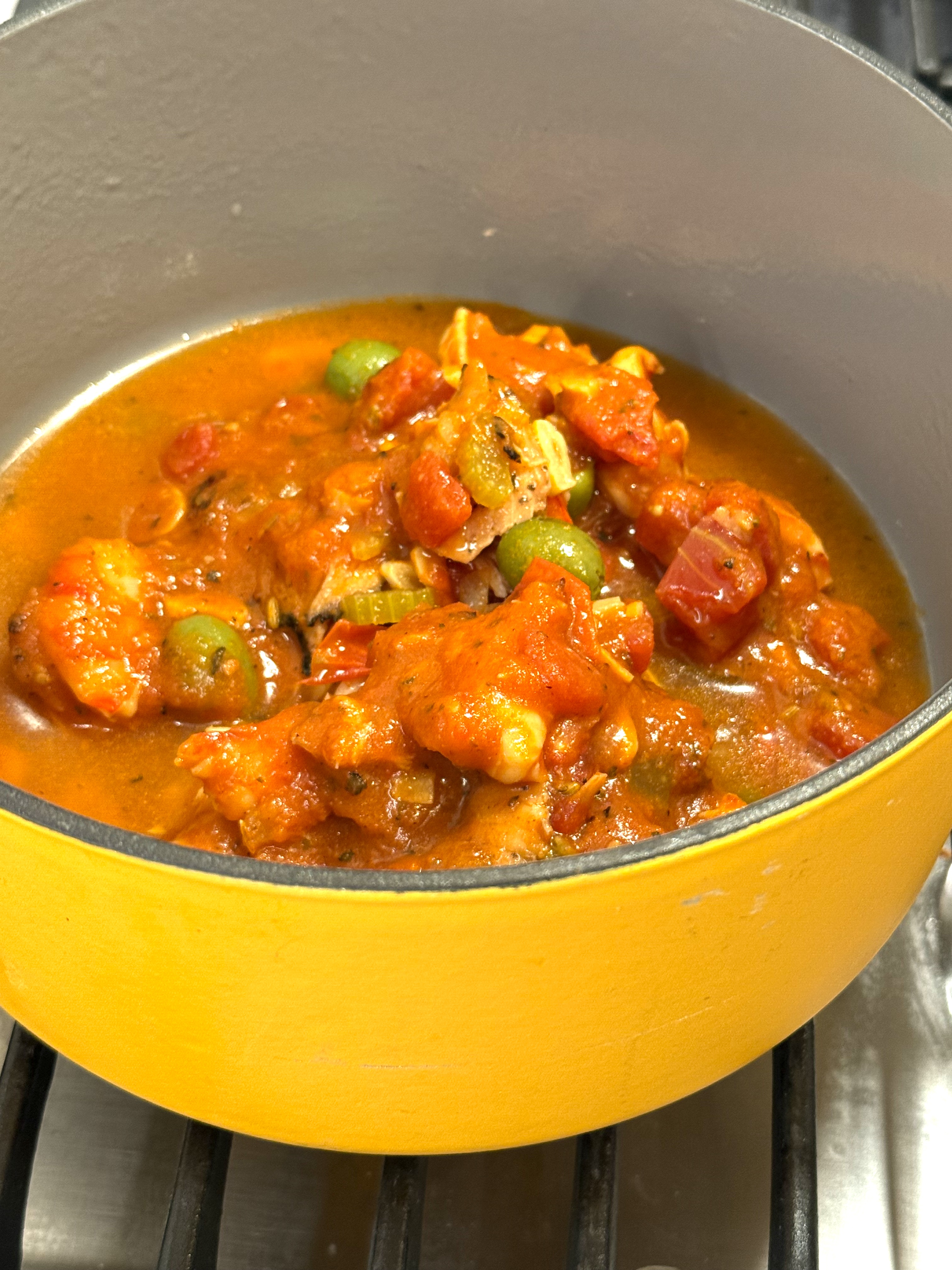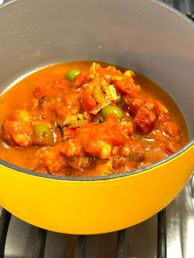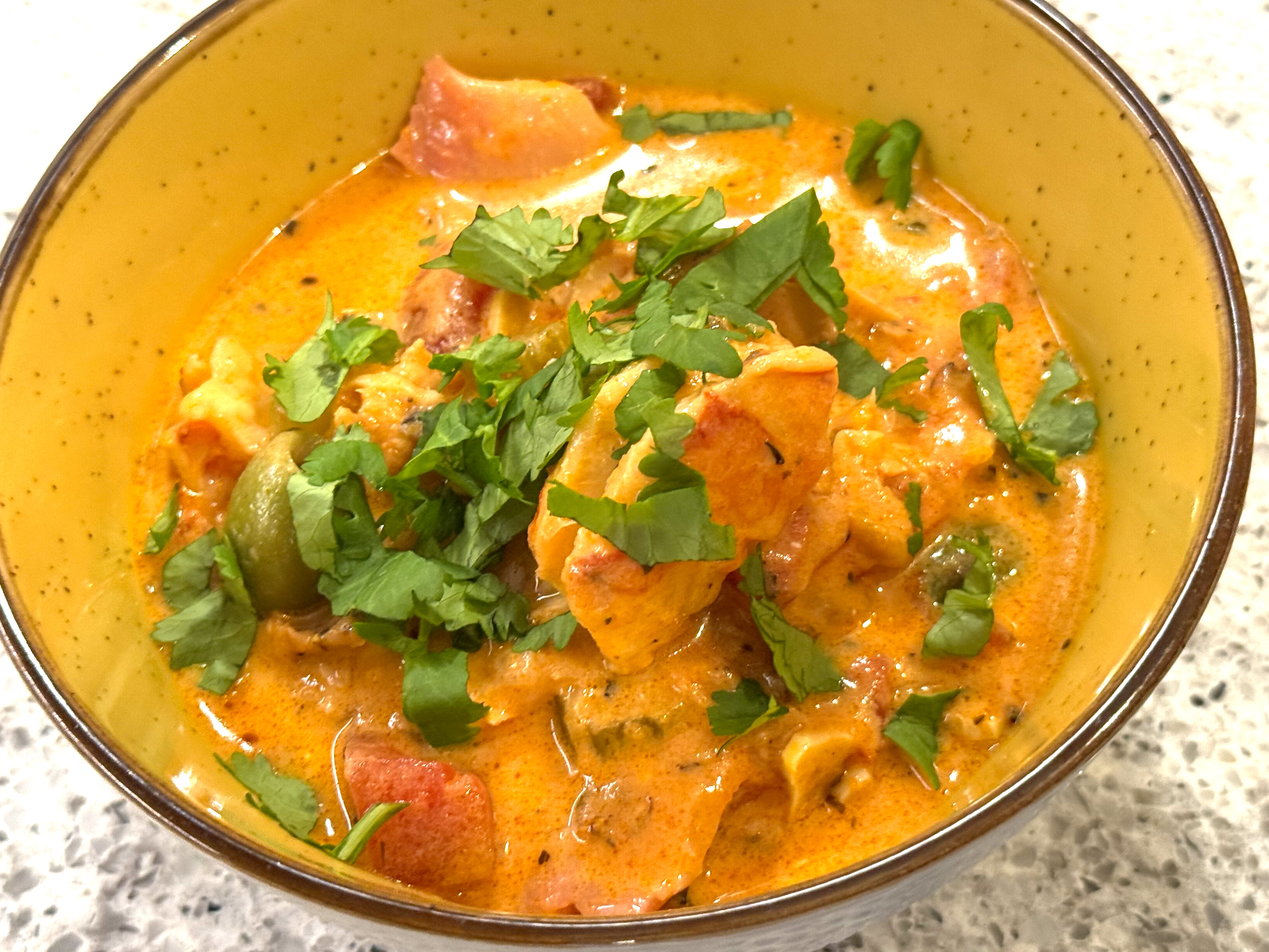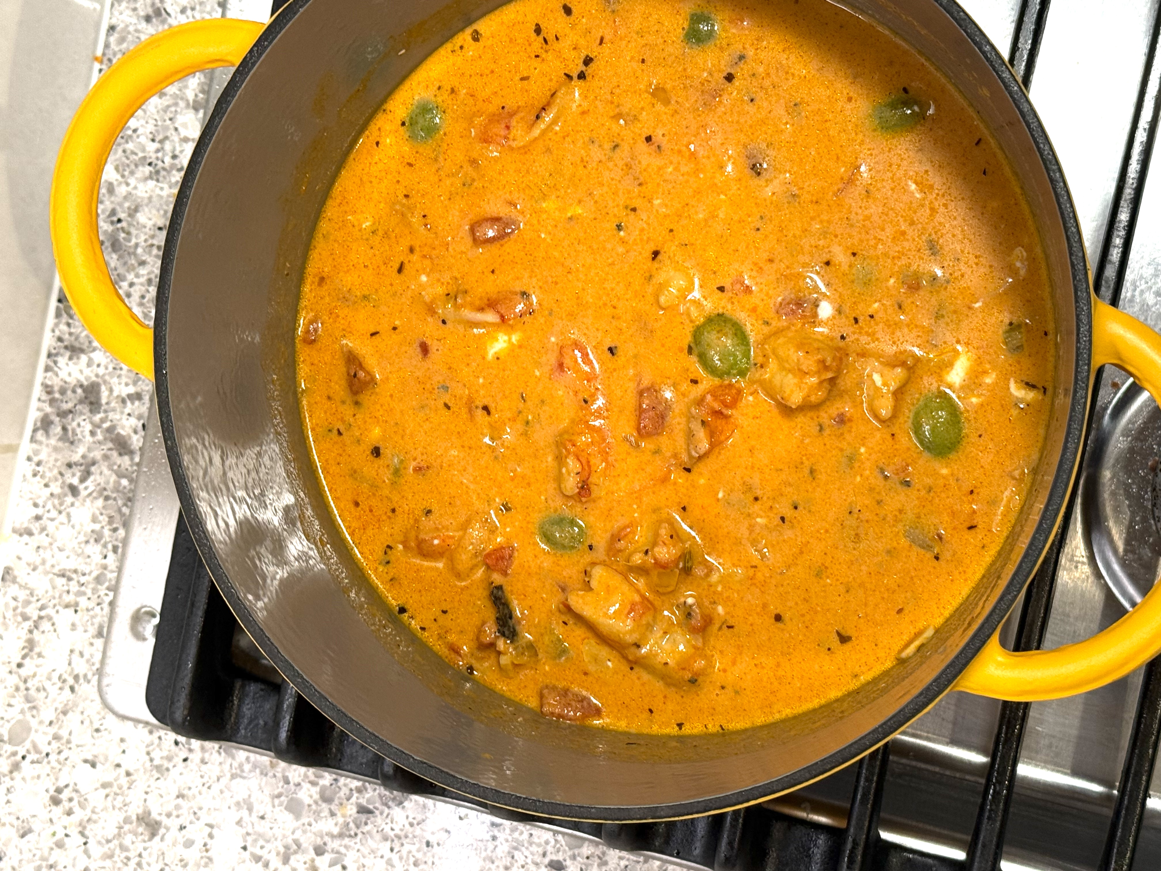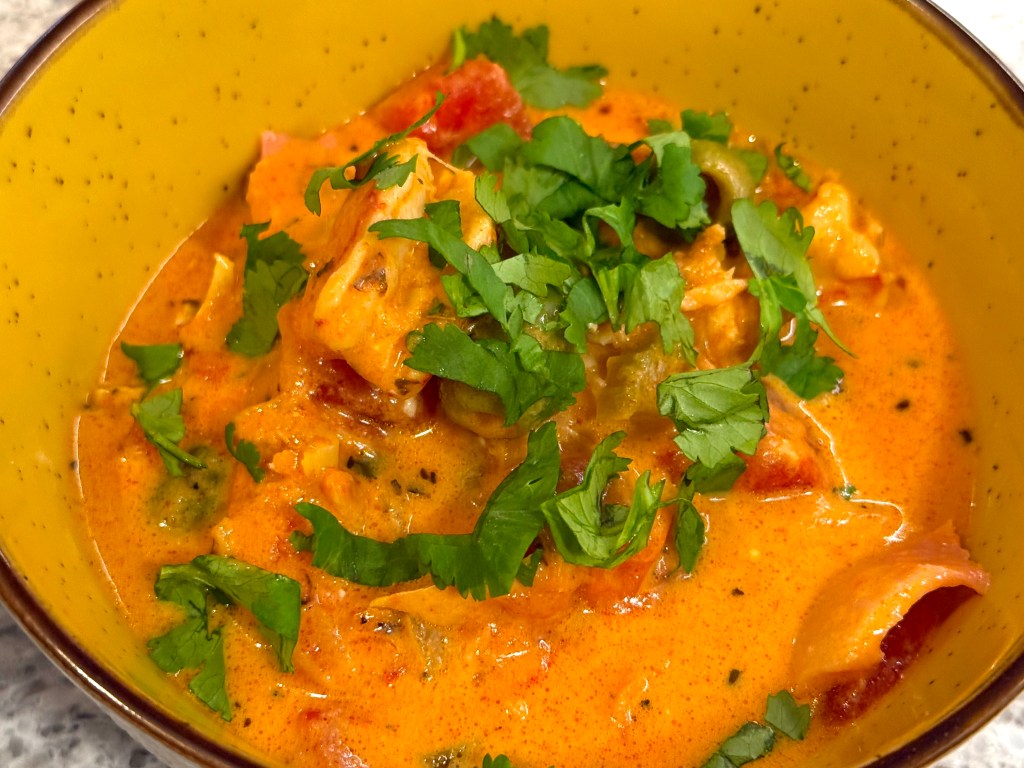 As you can imagine, I loved this dish! The creaminess of the chowder works perfectly with the green olives and tomatoes, which pack a nice punch as well…and of course the smoked salmon is delicious! I always serve it over rice but you don’t have to – and crusty bread is also a great idea!