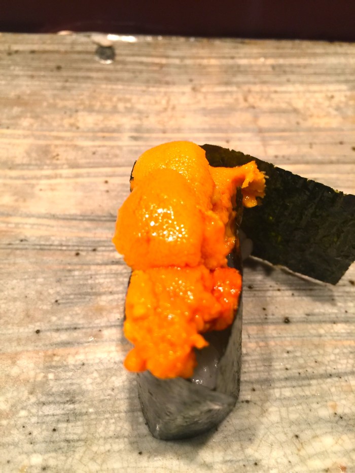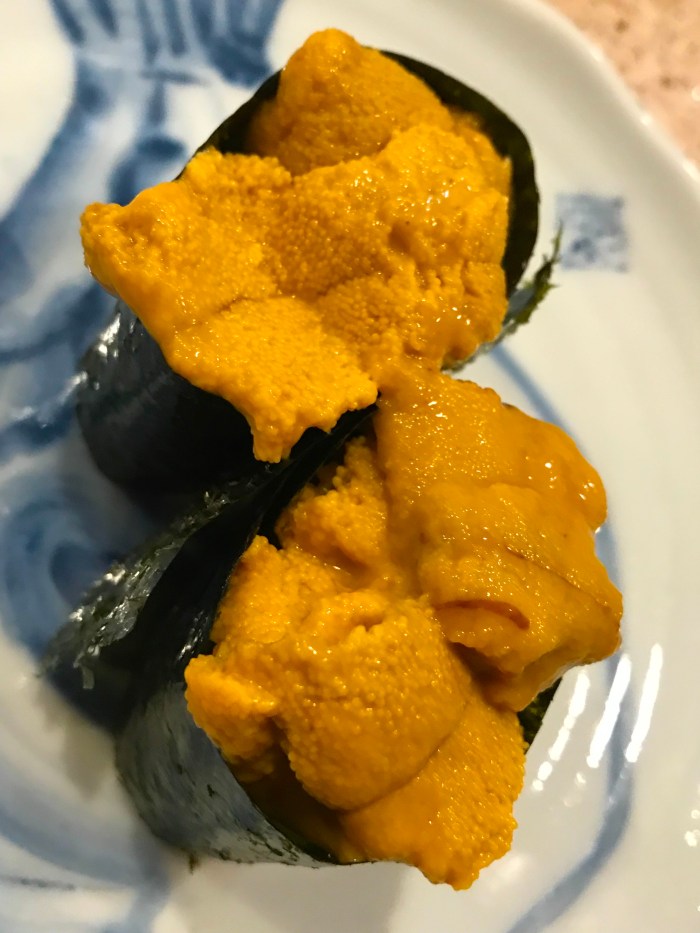 I love Sea Urchins – this is a piece of sushi I got in Tokyo, the sea urchin offering up a briny pop of ocean flavor!