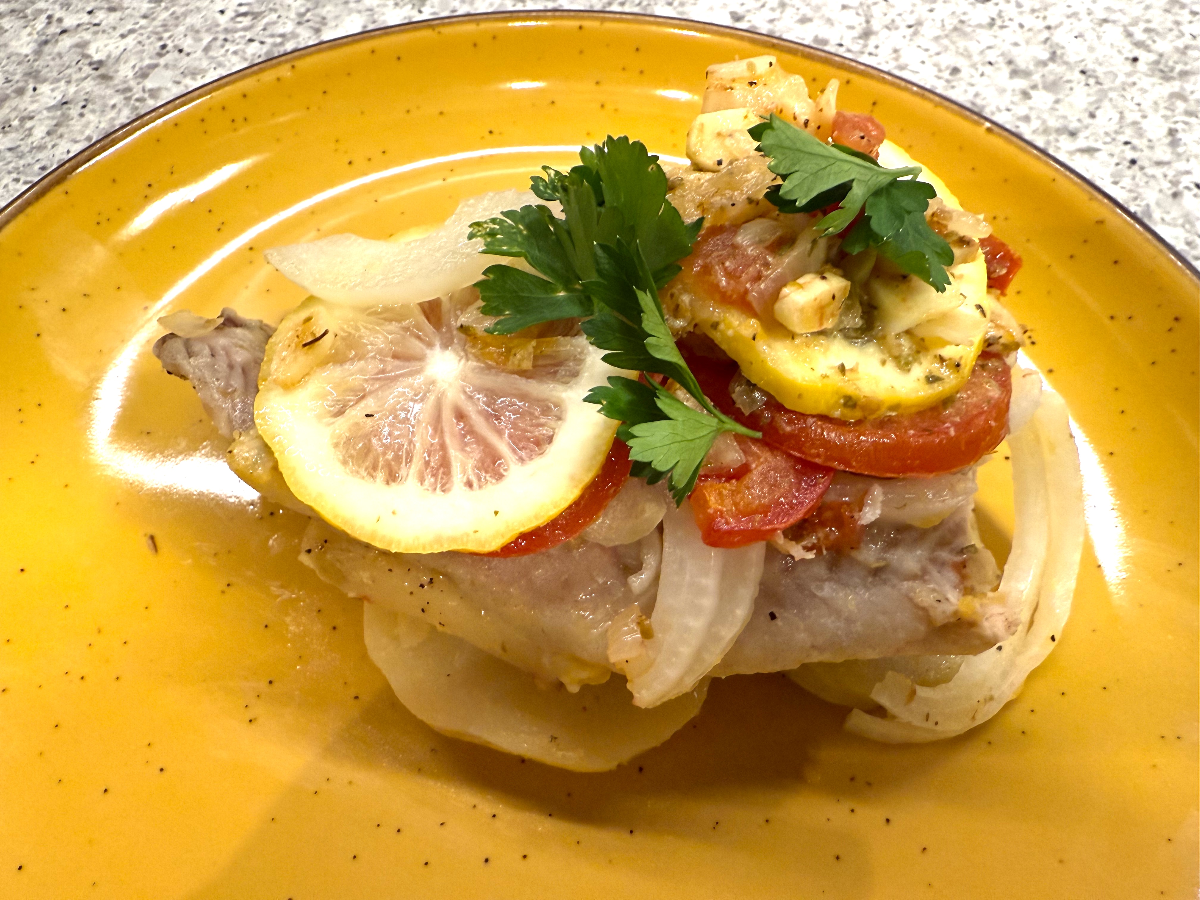 After baking for a half hour or so, I made sure the fish was cooked and then I plated the dish: