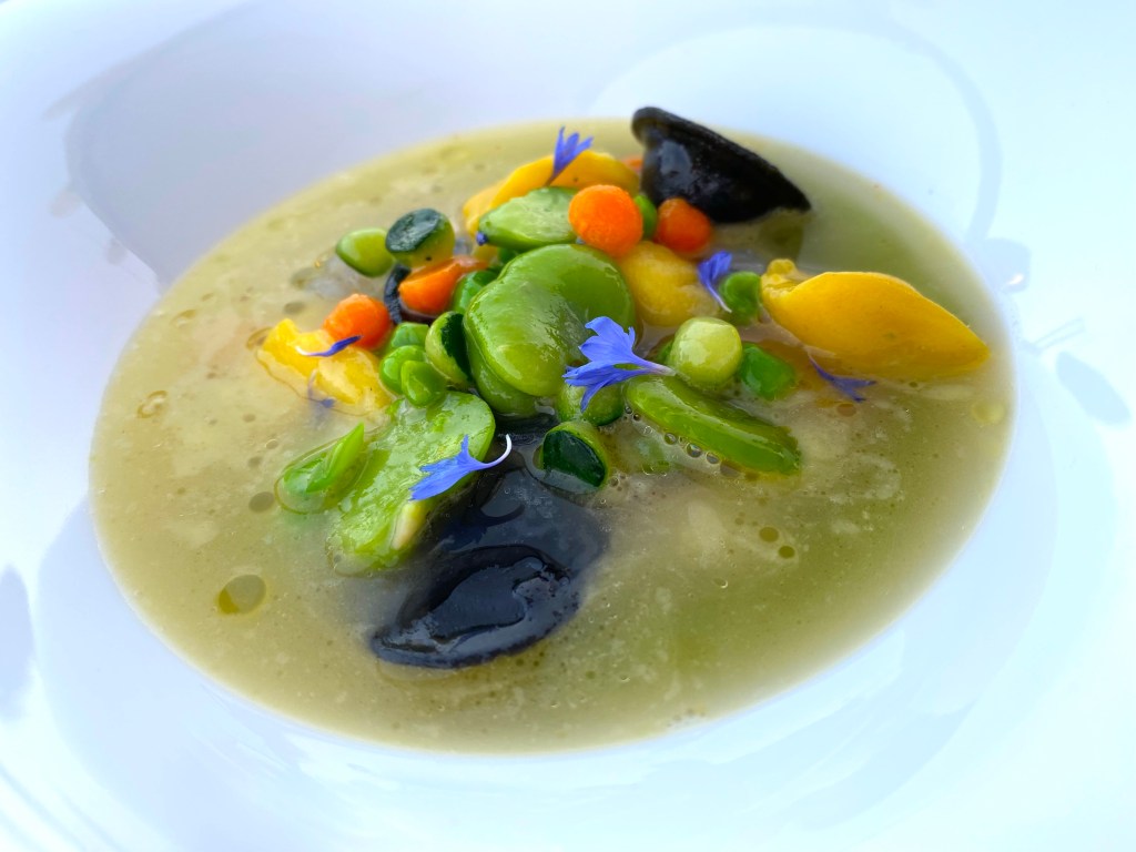 A fresh pean and lava bean soup, served chilled, led to my favorite dish of the night: