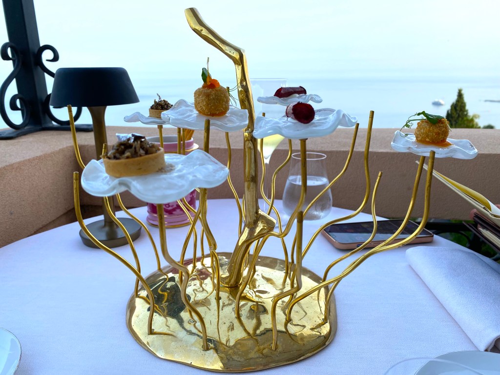 A big, big childish ‘wow’! Have not seen the TV show or been to the place and hence the hotel. Must say the food does look spectacular . . , and I am most closely eyeing that raw cuttlefish also. Even the chilled soup is beautifully served! And that small bites serving dish may be totally over-the-top but I have not sighted anything like it in my life! I may be sitting here green-eyed but thank you so much for taking us for a look 🙂 !!!